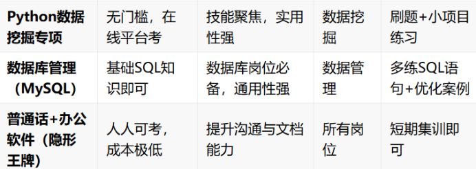 阶梯组合:按“基础→专项→高级”考取2-3个互补证书。