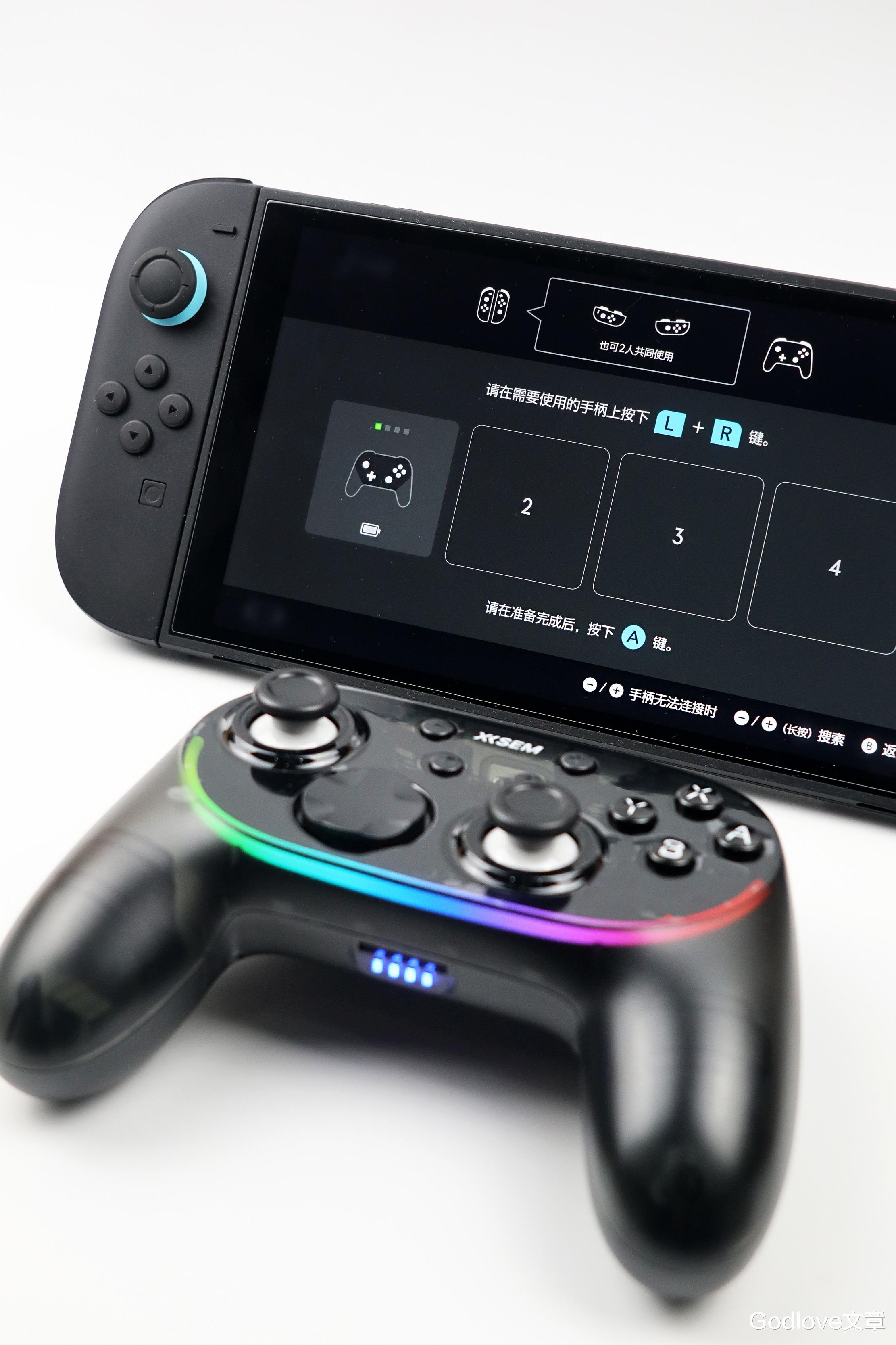 如Switch,长按配对键或者[Home]+[Y]键3秒进入配对模式、双击手柄图标更改握法/顺序即可完成配对(再次连接需单击[Home]键);