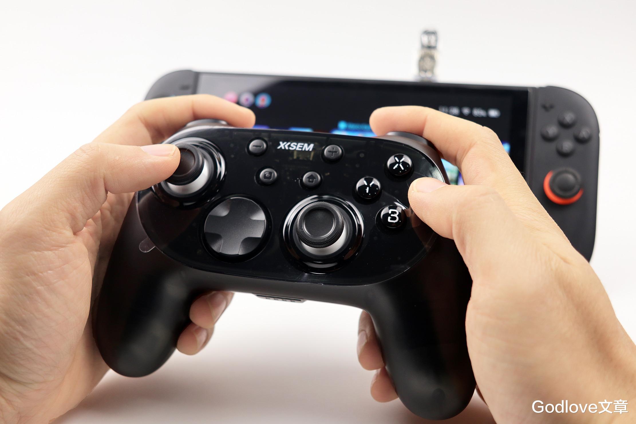 按键布局方面,西圣GC1游戏手柄常规的左侧布置手柄摇杆1、方向键,中上侧布置减号键、加号键、截图键、[Home]键,右侧布置手柄摇杆2、ABXY按键。