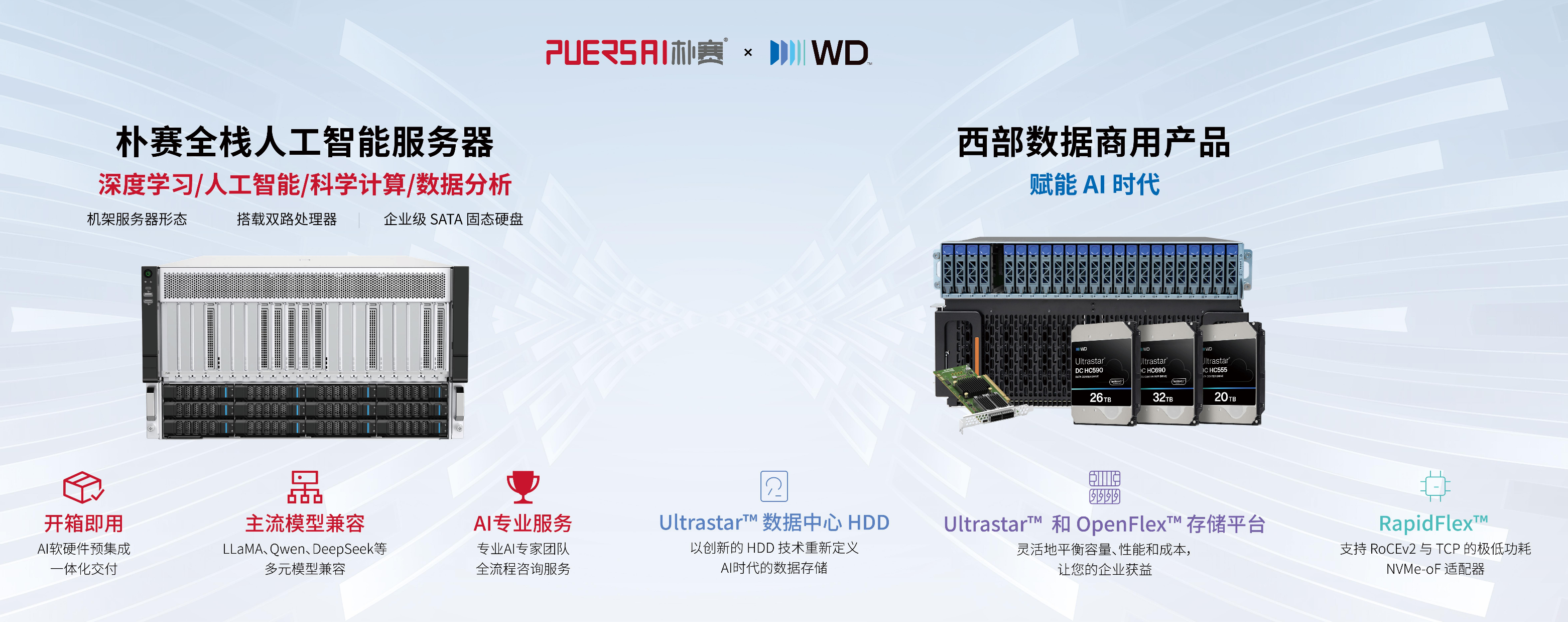 更值得一提的是,朴赛还携手西部数据带来联合存储解决方案,实现算力与存储的深度协同。分层存储架构平衡性能与成本,解决了企业数据存储容量不足、读写慢的痛点,从算力运算到数据管理形成全链路服务,让 AI 训练、海量数据处理的效率再上一个台阶。