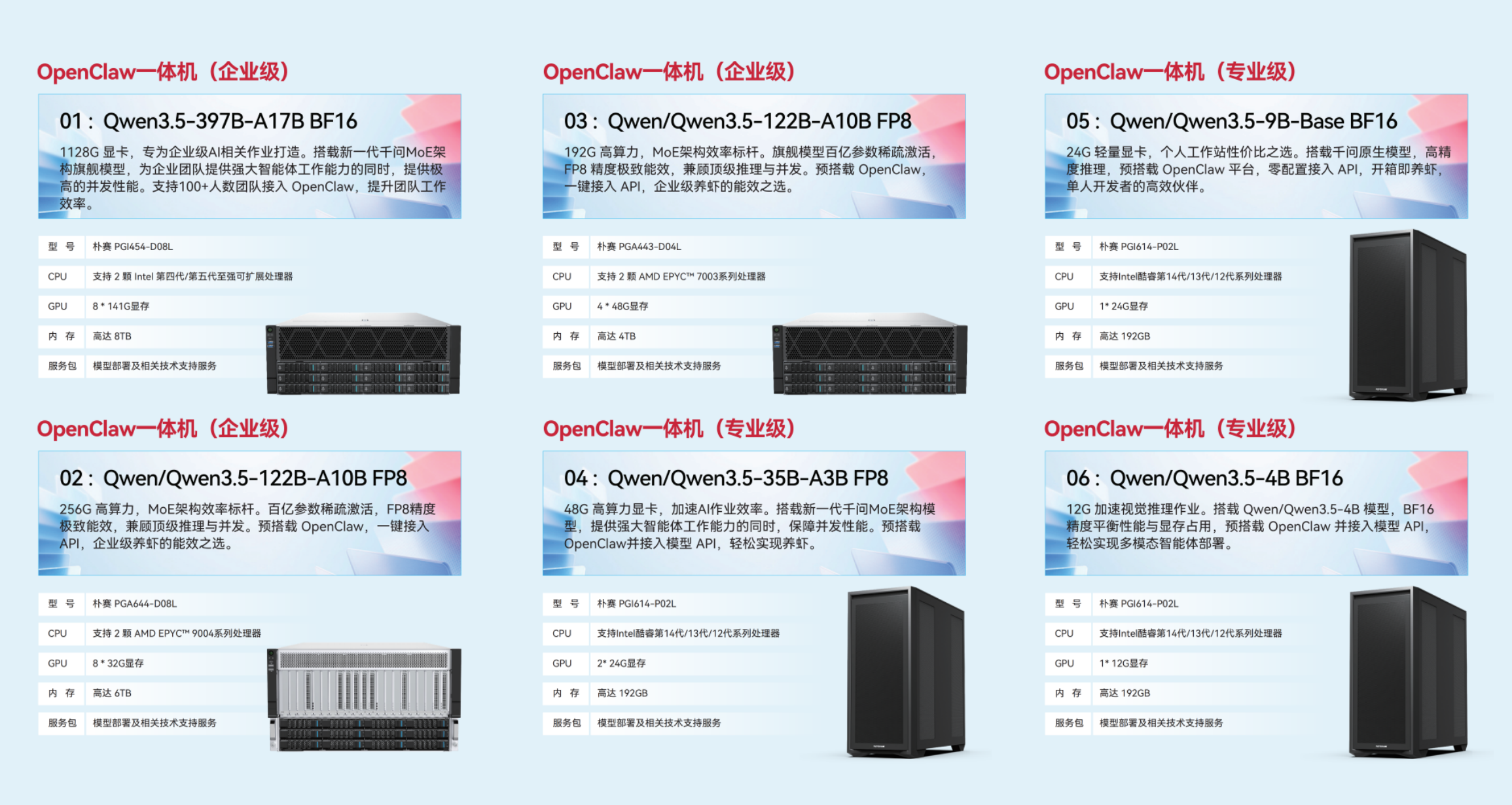 要说现场最吸睛的,当属朴赛专为 OpenClaw 打造的适配一体机,从企业级到专业级全覆盖,堪称 “养虾神器”。不同配置对应不同规模需求,企业级能支撑百人大团队协同,专业级是单人开发者的高效伙伴,还实现了框架运行、大模型推理全流程本地闭环,零配置开箱即用,彻底解决了 Token 成本高、本地部署难的行业痛点,硬件弹性架构还能灵活选配,按需升级不浪费。
