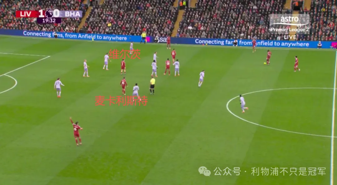 利物浦对布莱顿排兵布阵最大的亮点,我认为是麦卡利斯特和维尔茨的“一张一弛”。