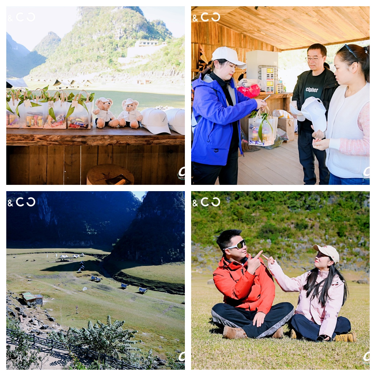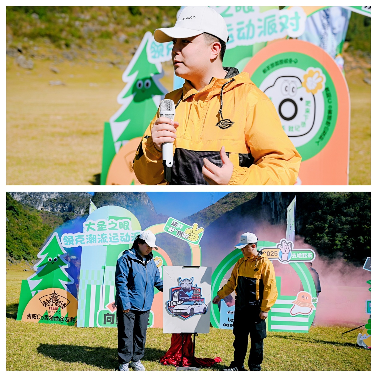 抵达天印山露营基地,壮丽的喀斯特地貌与开阔的草坪瞬间洗去了大家一路的疲惫。在如画的美景中,领取签到礼品