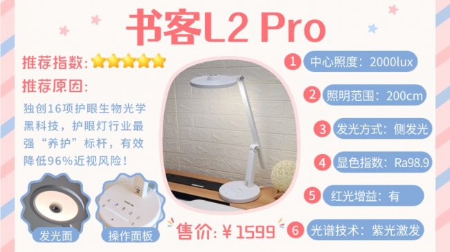 三、2026值得关注的护眼台灯推荐1.书客L2 Pro紫光激发:✅