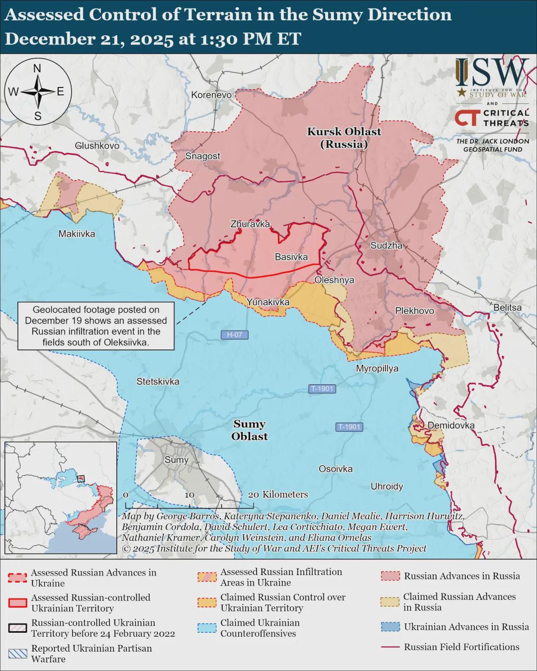 乌克兰当局于12月20日和21日报告称,俄军在12月19日至20日夜间进入苏梅州格拉博夫斯基(苏梅市东南部沿国际边境的一个小村庄)