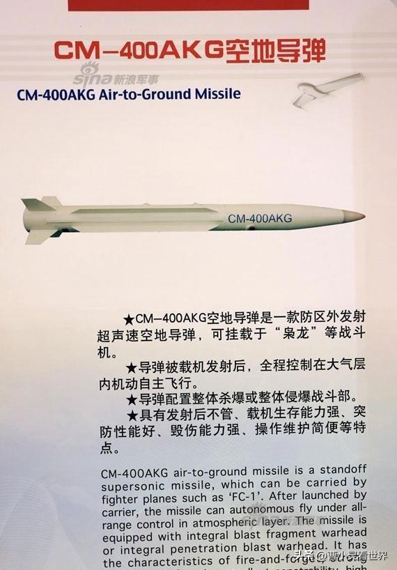 我们卖了什么导弹出去?CM-400AKG是中国航天科工集团造的超音速空对地弹道导弹,弹长5.17米,弹径400毫米,全重870公斤,末端速度4.5马赫起步,射程在240到400公里之间浮动,要看挂载高度和飞行剖面。
