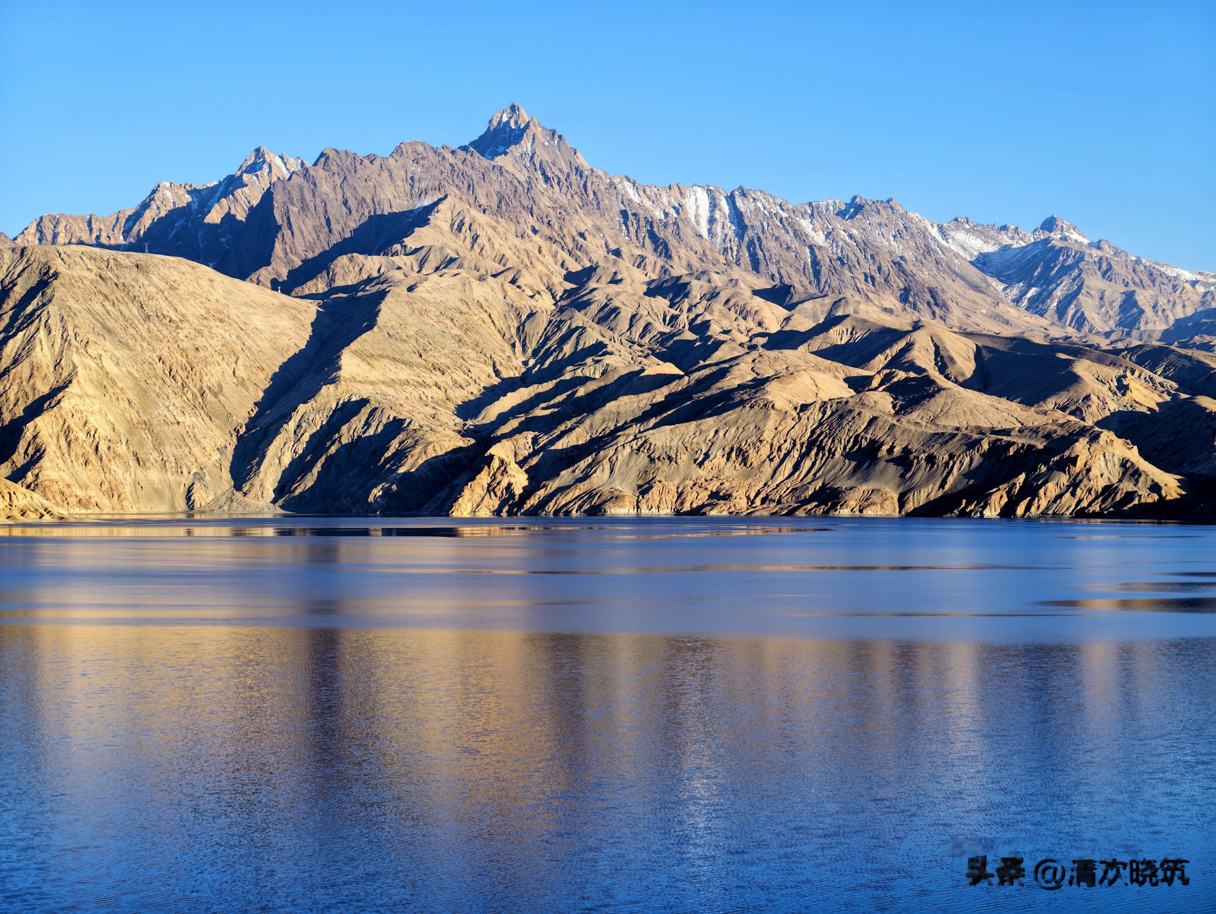 但所幸太阳还没有落山,夕阳斜斜地照在对岸的昆仑山脉上,湖面的颜色深邃如大海,一种不可抗拒的沉静。