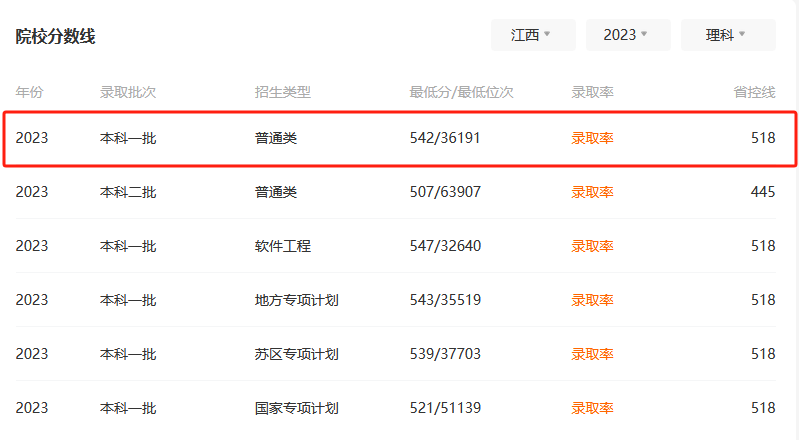 根据官方数据表明,南昌航空大学2023年在江西省本省在本科一批次招生,其理科录取分数线为542分,超出了当年省控线24分,而文科的录取分数线为553分,超出了当年的省控线20分。换言之,想要报考昌航,各位考生必然要在高考分数上具备一定优势。