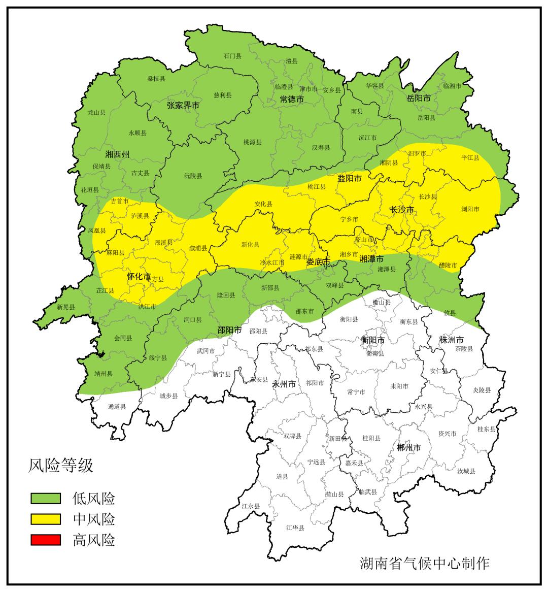 暴雨灾害:2日、5日、9日、12日至13日、25日至26日湘中、湘北有发生暴雨灾害的风险,其中怀化中部、益阳南部、娄底西部、长沙、湘潭北部、株洲北部、岳阳南部有中风险(附图3)。
