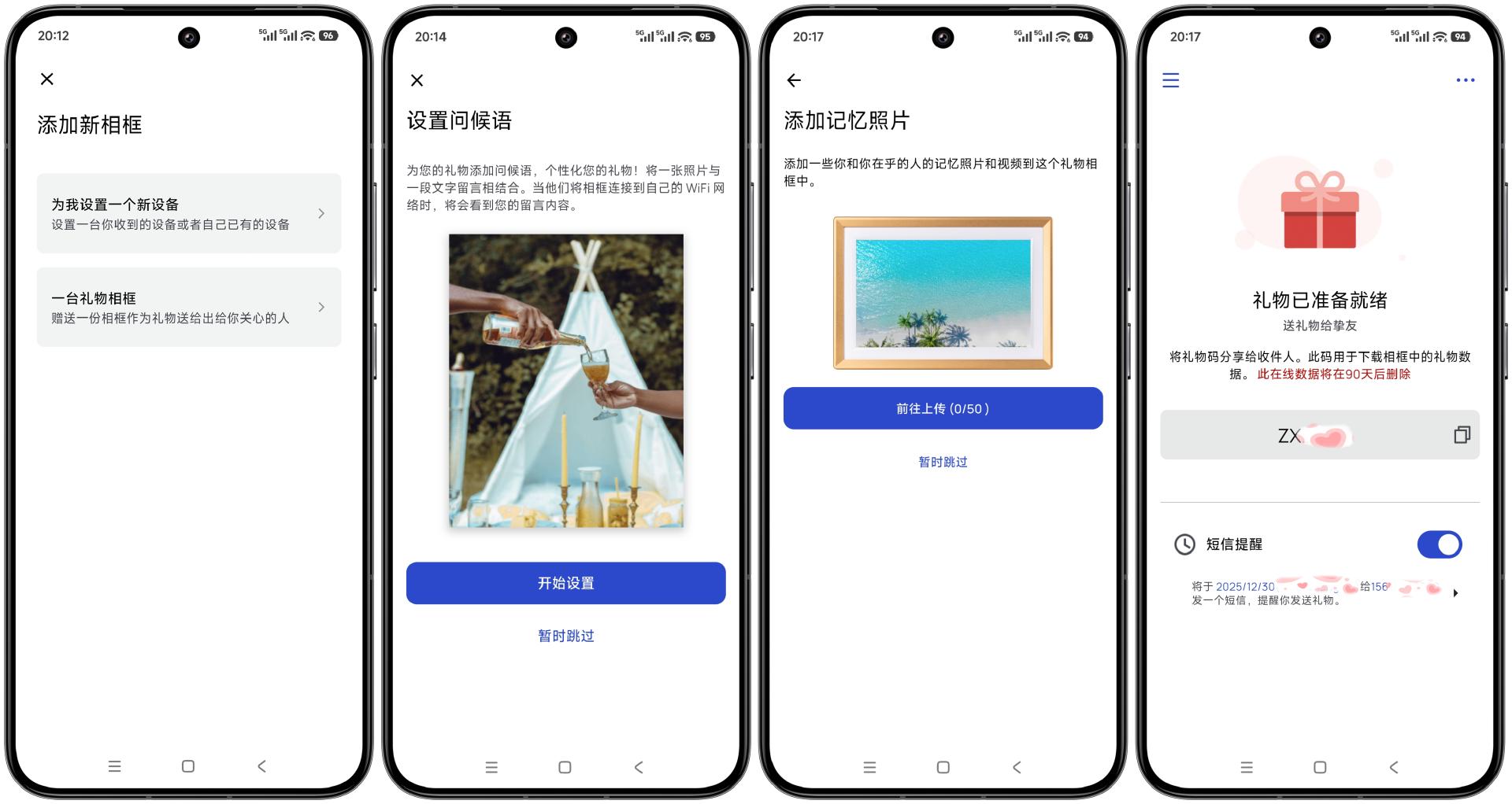 ARZOPA D10有个智能礼物模式。在手机APP里输入几句祝福的话,再挑好照片、选段视频,一键生成专属的礼物动画。朋友收到后,打开相框连WiFi,之前准备的内容直接就可以自动播放了,仪式感拉满,相信好友肯定会非常喜欢。在我看来,这份充满心意的礼物,远比普通的礼品更有意义。
