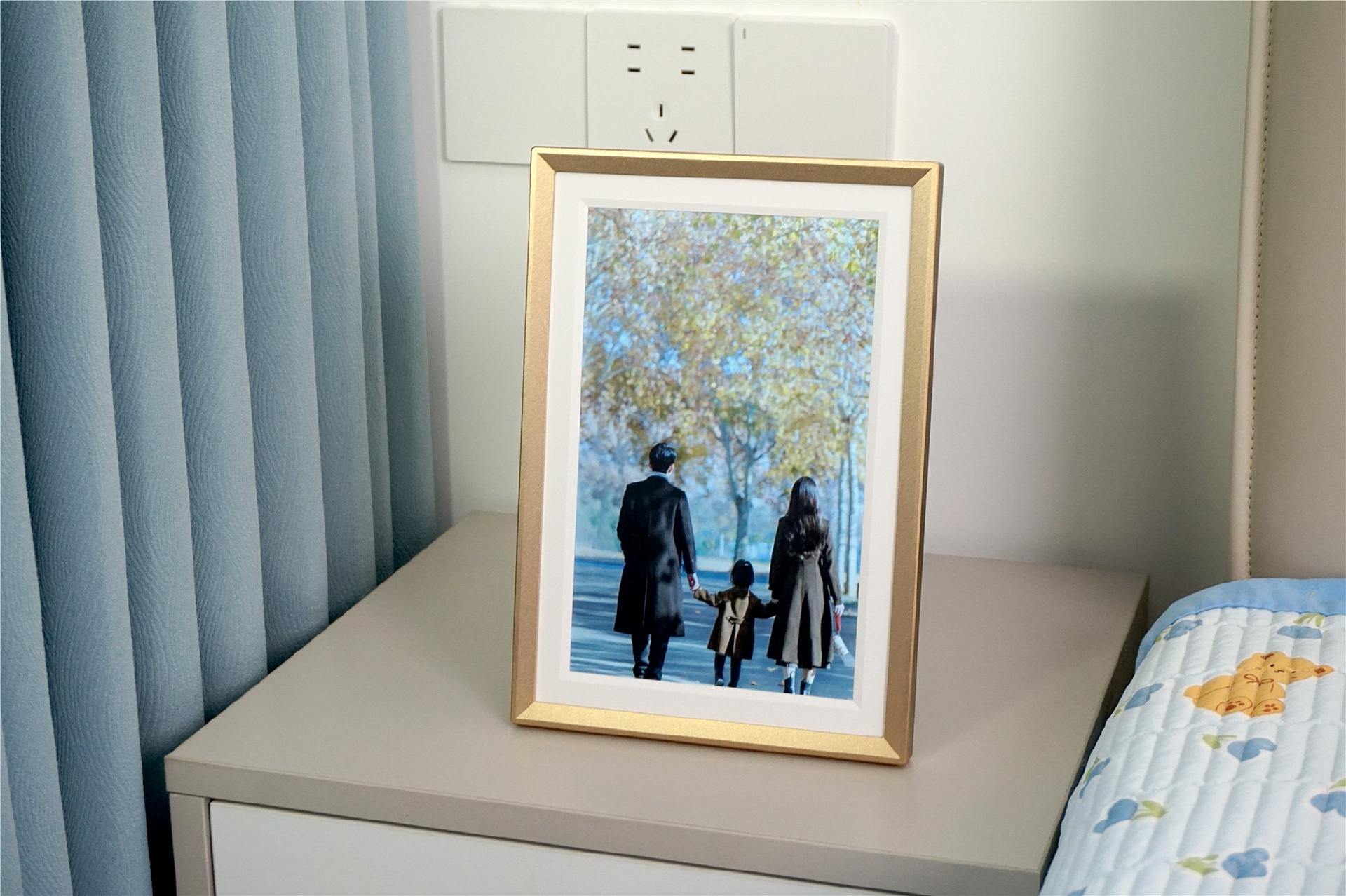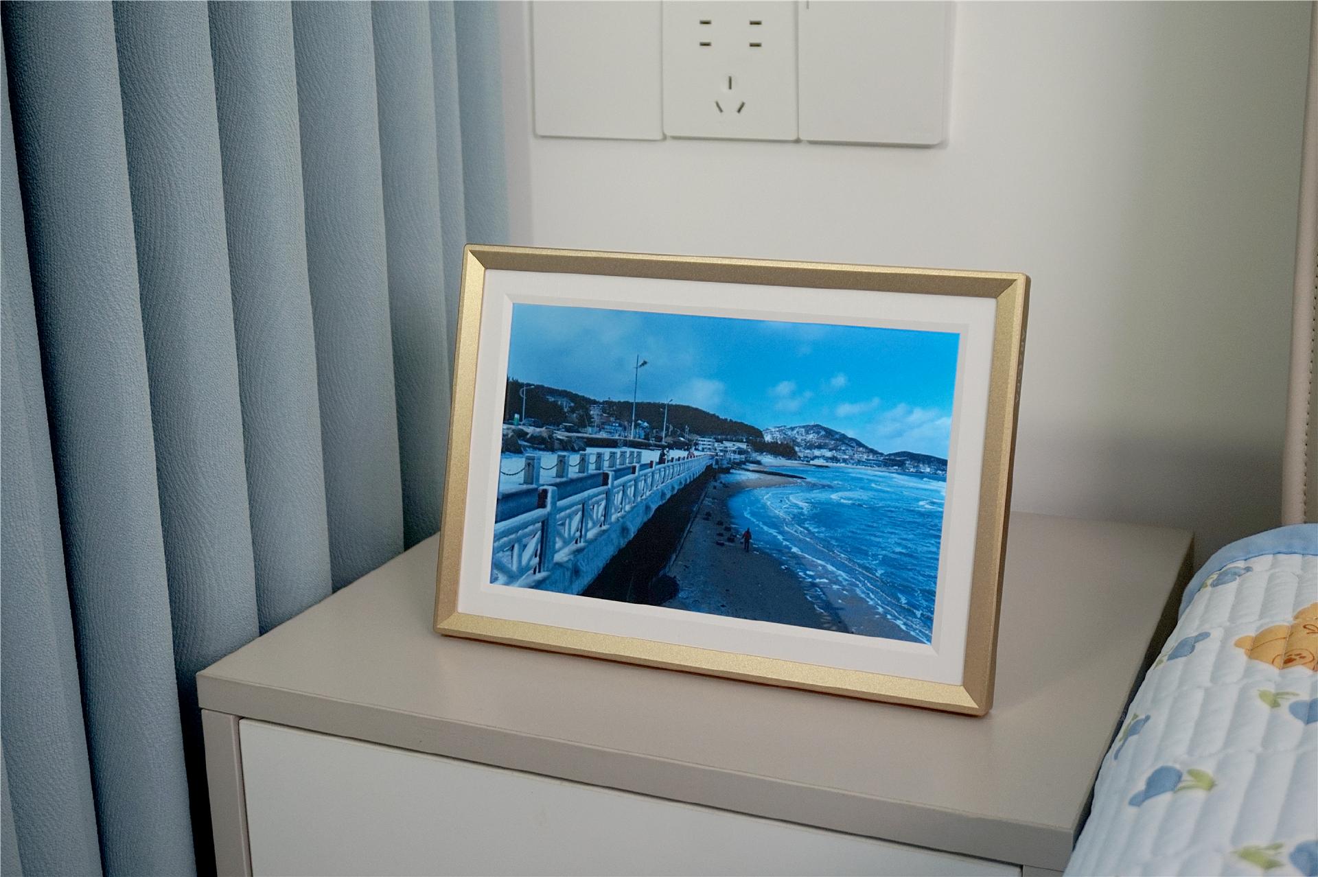 居家使用时,它是点缀精致生活的绝佳选择。我把它放在客厅的电视柜上,设置为循环播放全家的合影和孩子的成长瞬间,每次下班回家看到这些温馨的画面,一天的疲惫都能瞬间消散。或者把它摆放在卧室的床头柜上,晚上睡前,播放一些温馨的家庭照片,带着满满的幸福感入睡,连梦境都是温暖的。
