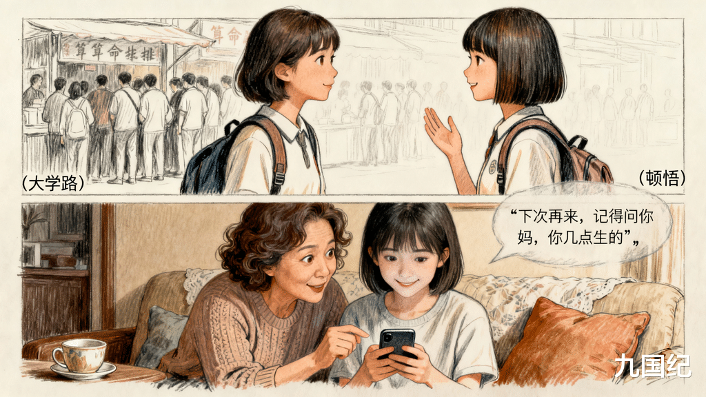 之后在大学路,我碰到一个排队等着算命的女生,因为好奇就上前问她算命的原因。她笑着说,「快毕业了,前途一片迷茫,不算个答案,就想找个借口,再理所当然地拖一周」。