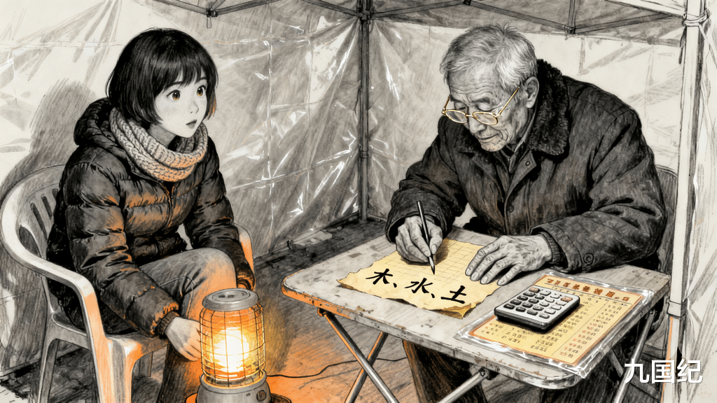 抱着找毛病的心思掀帘进去,棚子小得转不了身。折叠桌配着塑料椅,一个小太阳正呼呼吹热风,暖乎乎中带着旧纸张的味道。桌上摊着发黄的万年历,计算器旁边压着一张塑封的价目表,基础命盘三千韩元,换成人民币也就十六块。