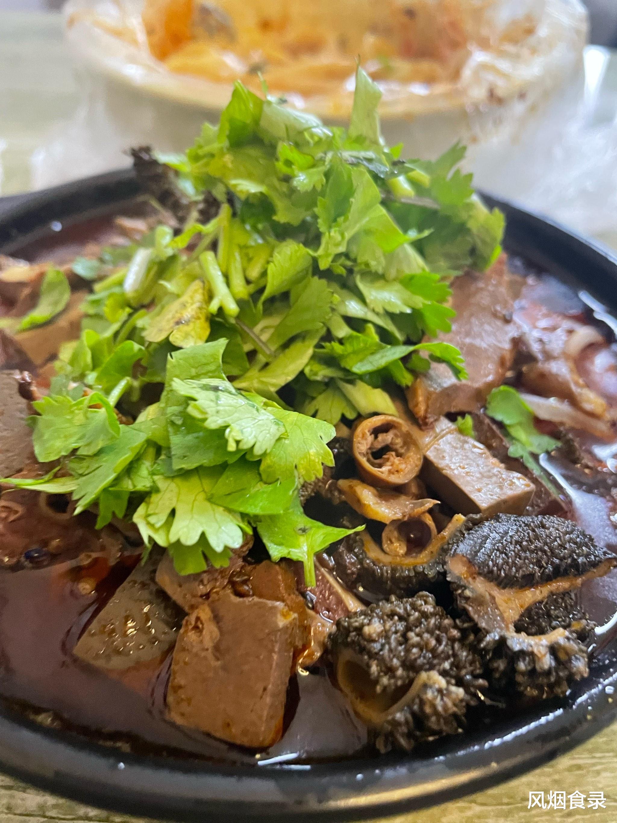 羊头蹄心肝肺肠血,洗净焯水后慢炖,配山药粉条,加胡麻油、油辣子、老陈醋调味。
