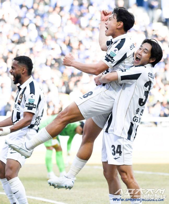 半场归来,金基东率先变阵,“仁川克星”鲁伊兹和孙胜模同时登场,他们换下了身背黄牌的克里马拉和小将孙正范。而正是他们的登场,改变了比赛的局势,下半场刚刚开场,孙胜模和巴贝茨打出配合,后者直塞球交给前插的宋旻奎,首尔射手面对上赛季K2最佳后卫金建熙冷静将其骗过,并用吊射完成进球,1-0!宋旻奎打入了加盟首尔的首球。进球之后,他和恩师金基东拍掌庆祝,缓解了连续两场正式比赛颗粒无收的压力。