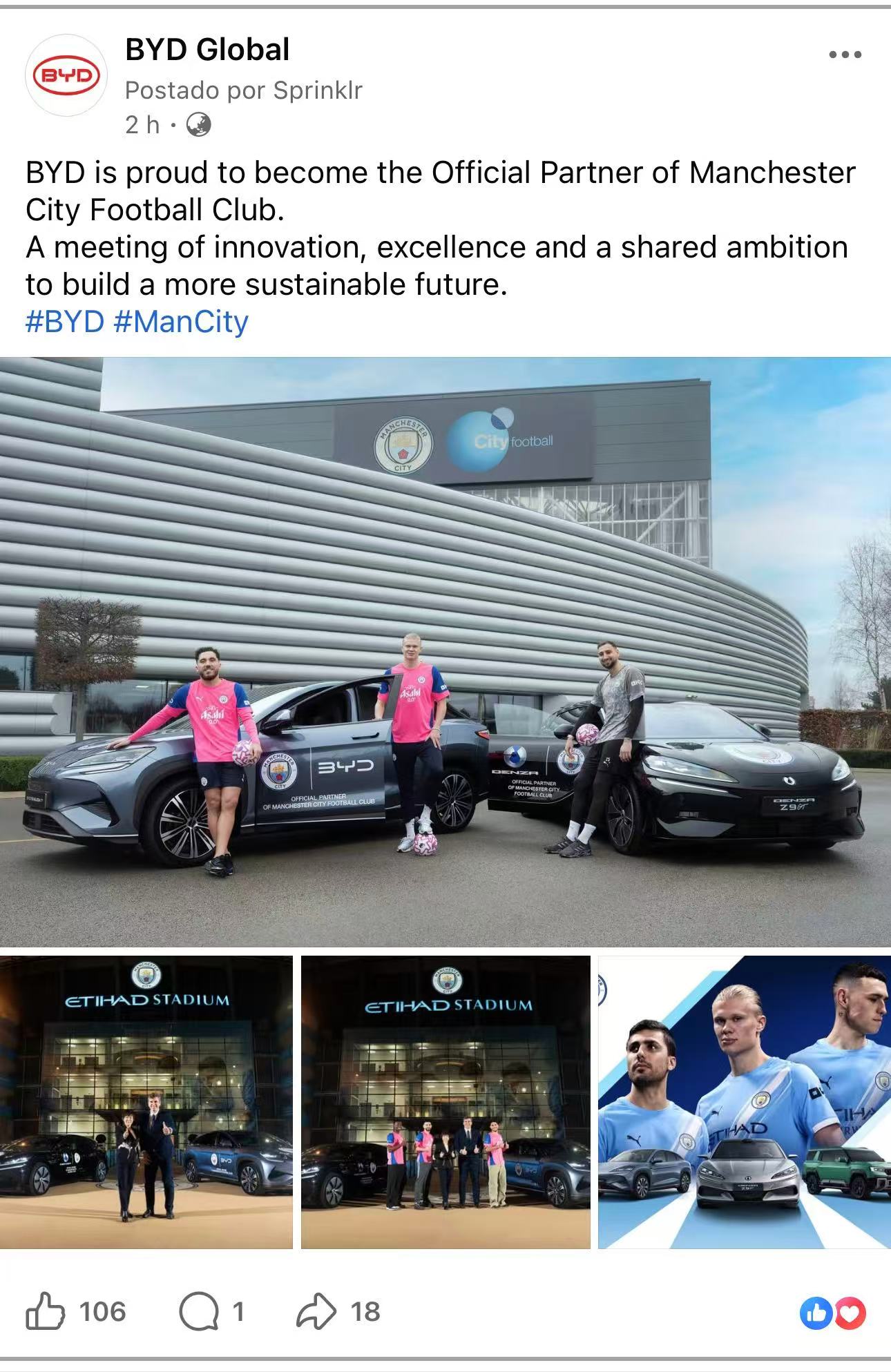 2月11日,比亚迪正式宣布与曼城足球俱乐部达成深度战略合作,成为其官方合作伙伴。这不仅是全球新能源领军者与世界顶级足球豪门的强强联手,更是比亚迪以绿色出行赋能绿茵赛场、加速全球化进程的关键落子。
