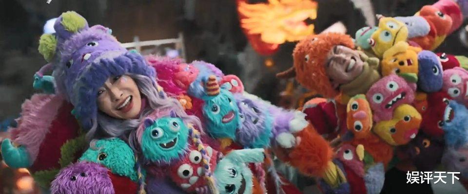 再有一点,让观众看的很爽的是,本片可以看作是王鹤棣和宋茜两大偶像明星的超级变装秀。因为要在不同的梦境中穿梭,所以他们一会是杀手,一会是蛊惑仔,一会是学生,一会是服务员,甚至还有一次是广告牌中的二维漫画。他们的粉丝可以大饱眼福了,估计王鹤棣、宋茜本人也会大呼过瘾,换了十几套妆造,就像体验了十几个不同的人生。也由于一切发生在梦里,导演就可以极尽想象力,在色彩、布景等各方面玩耍起来,像打翻调色盘一样,各种饱和度超高的明艳色彩如同视觉爆炸一般汹涌而来。比如子弹、飞刀碰到人之后就会自动变成水果、糖果、甜点,满眼五光十色的多巴胺啊,名副其实的秀色可餐。