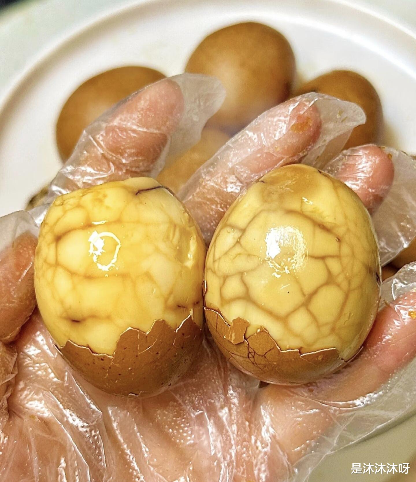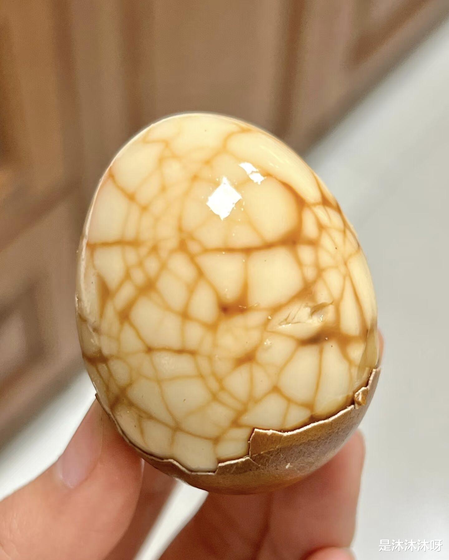 等浸泡完成后,就可以开吃啦!用勺子把鸡蛋捞出来,剥掉壳,你会发现鸡蛋表面的颜色比刚煮好时更深,裂纹处像天然的“纹路”,蛋白上带着茶色的纹路,看着就很有食欲。咬一口,蛋白Q弹有嚼劲,蛋黄沙软不干,每一口都带着茶叶的清香和卤料的醇厚,咸香适中,越吃越上瘾。一次做得多,可以把鸡蛋泡在卤汁里放冰箱冷藏,随吃随取,早上起来热一下,配碗白粥,或者当零嘴啃着吃,比买的茶叶蛋好吃100倍!