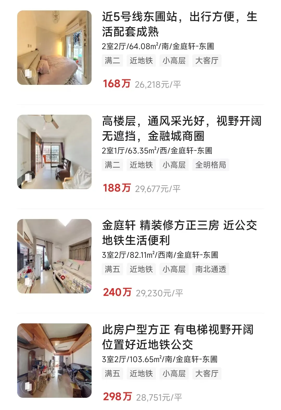 总的来说,东圃、三溪这一片2、300万能买到的二手,选择挺多。金庭轩价格低但比较旧;天力居比较安静,楼龄也比较旧;佳润上品箐园楼龄新,但配套稍弱;盈彩美居配套齐,楼层、价格比较高。