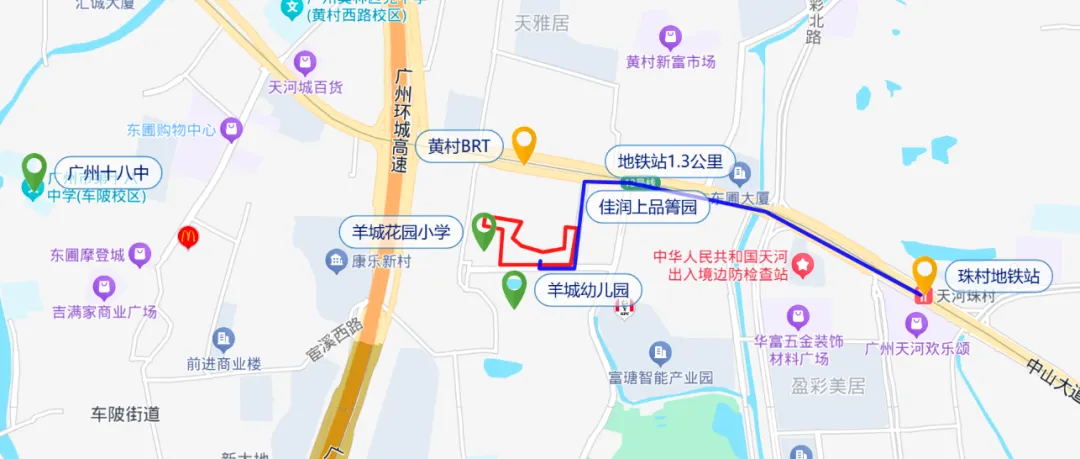 交通方面,附近有黄村BRT和13号线天河珠村站,学校的话小区旁边就是羊城花园幼儿园和小学,初中也是广州十八中。