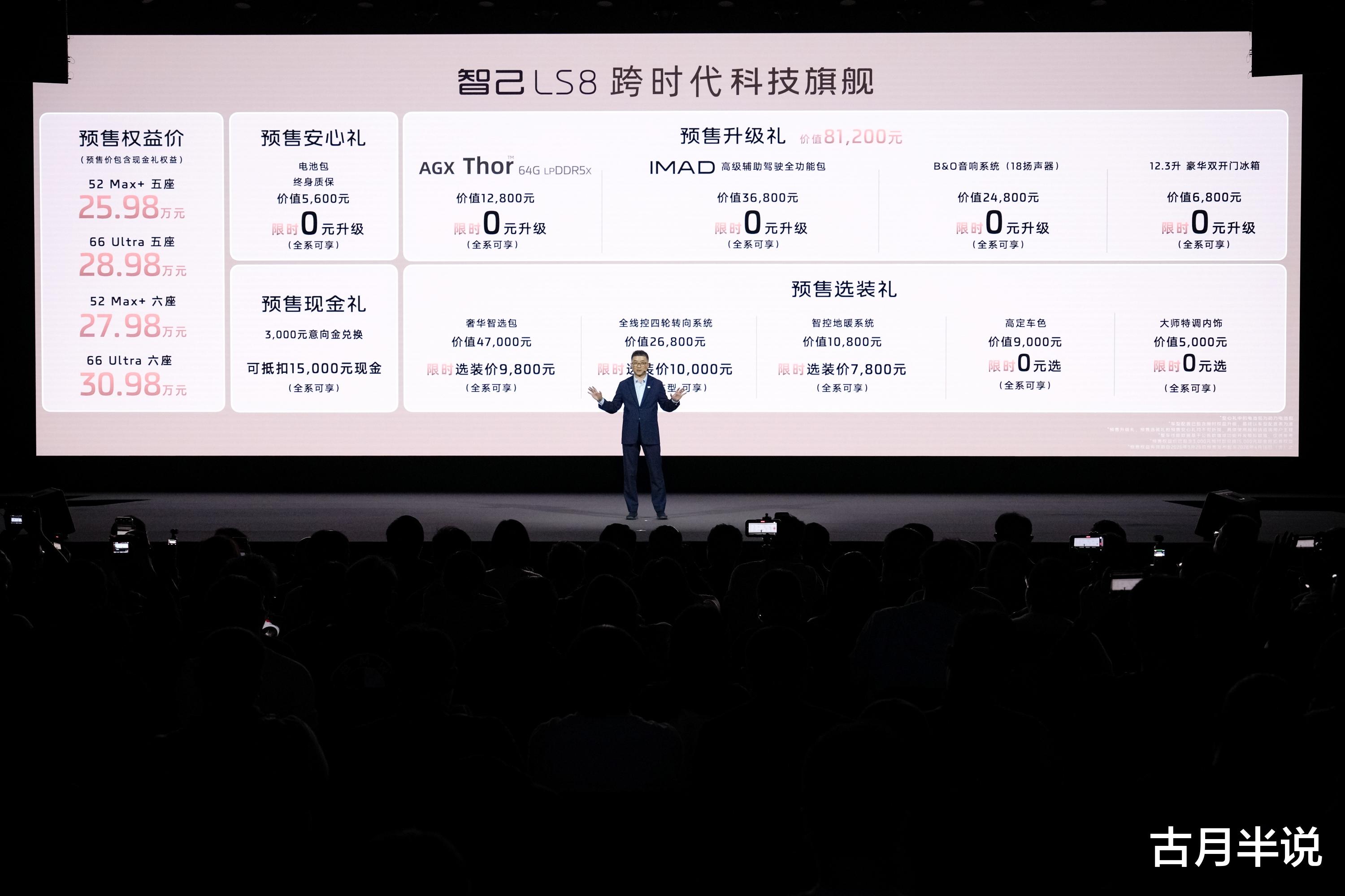 3月26日,智己LS8正式开启预售。新车提供大五座和大六座两种版本,预售权益价25.98万元至30.98万元。放在两年前,这个价格能买到一台配置还算齐全的中型SUV就算不错。但这一次,智己直接把“百万级”的技术清单塞进了一台30万以内的车里。
