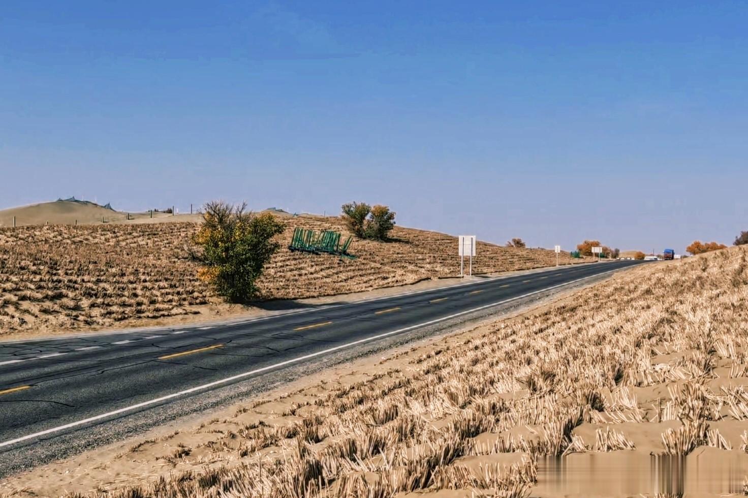是的,沙漠公路,横穿塔克拉玛干沙漠的公路,听起来是那么的充满挑战和艰险,但实际上是一条非常新手都可以开的柏油马路。公路两边的网格固沙非常密集,保证了车辆的顺利通行。这是多大的工程!