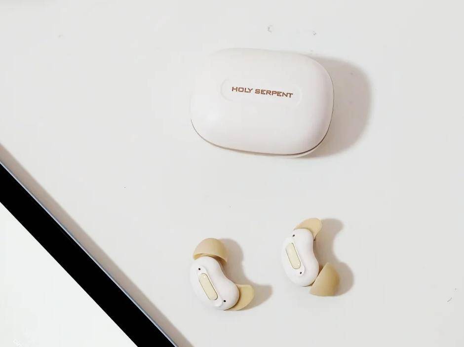 蛇圣小悠提供了三种配色,奶咖白、曜石黑和牛油绿,整体风格清新耐看,不像传统耳机那么普通,更像一个小巧的随身小配件。耳机体积小巧,外形圆润,像颗迷你蚕豆,因此不少人直接叫它“蚕豆耳机”,戴在耳朵里也不突兀。单只重量只有3.3克,手里拿轻飘飘的,戴上之后耳朵几乎没有负担,长时间佩戴也不会累。弧边部分采用液态硅胶材质,手感柔软、温和,贴合耳道时舒适自然。为了增加稳固性,它还设计了类似“鲨鱼鳍”的固定结构,可以卡在耳廓上,佩戴时更牢靠。无论是睡觉戴着,还是跑步、健身时佩戴,耳机都能保持不错的贴合度,不容易滑动或掉落。