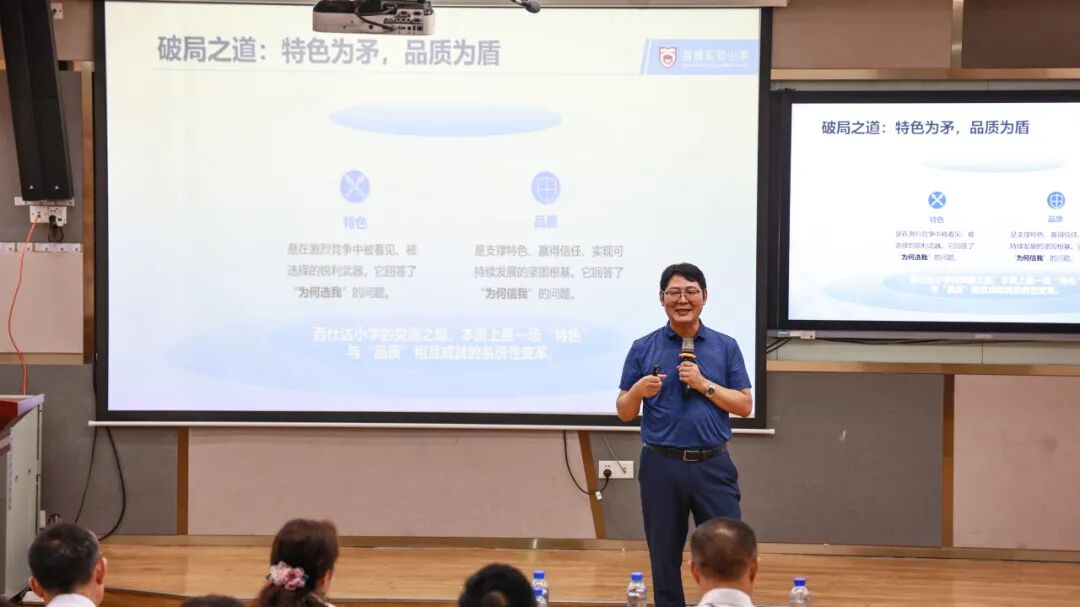 报告伊始,熊校长直击民办学校 “在教育红海中挣扎” 的共同困境。但他同时以百仕达小学的蜕变为例 —— 从曾经的 “门可罗雀” 到如今的 “一位难求”,生动诠释了民办学校的破局之道:以特色为矛,以品质为盾,为在场教师点亮了发展方向。