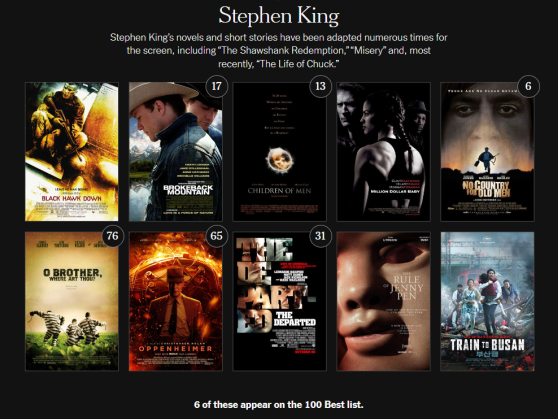 日前,《纽约时报》发布了一份21世纪百佳电影片单,这份排名由全球500位导演、演员,编剧及影评人投票选出,每人提名10部自己心目中的最佳影片(无需先后排名),最终通过积分制统计排列出21世纪迄今为止最好的100部电影。