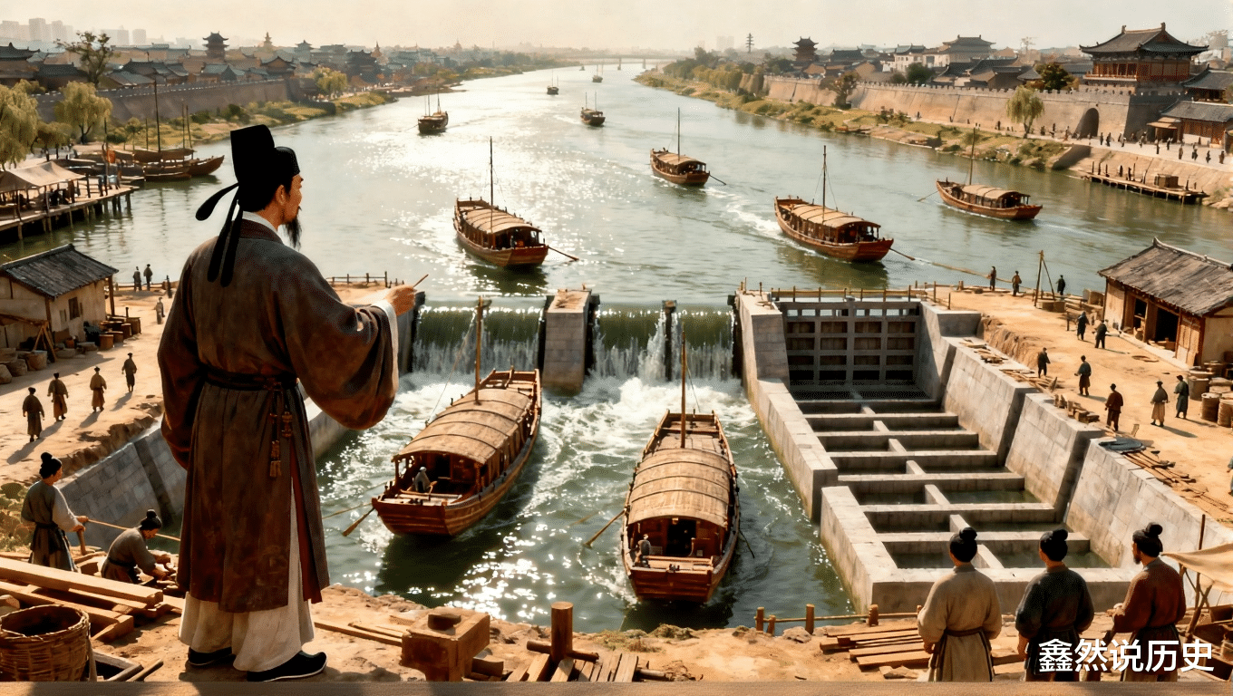 先看沈括的核心发明——平底龙骨漕船,这正是北宋时期的关键核心技术突破。不同于当时主流的“尖底船”,沈括精准抓住汴河泥沙淤积的特性,将船底设计为平底,同时在船底中央加装一根贯通首尾的“铁制龙骨”。这一设计看似朴素,实则暗藏着现代船舶工程的核心逻辑:平底造型大幅减少泥沙阻力,铁制龙骨则强化船体稳定性,即便在浅滩区域也能平稳航行,载重量更从原来的200石飙升至500石。更令人称奇的是他配套设计的“多级船闸”:在汴河浅滩段连续设置闸门,通过开合闸门调节水位差,让漕船像走“楼梯”般平稳通过浅滩,彻底根治了搁浅难题。《宋史·沈括传》明确记载,这套系统投用后,汴河漕运时间从3个月压缩至1个月,损耗率骤降至不足5%,宋神宗亲自下旨嘉奖,盛赞其“功胜十万漕兵”,而他精准测算载重量与效率的思路,更是工程量化设计先驱。