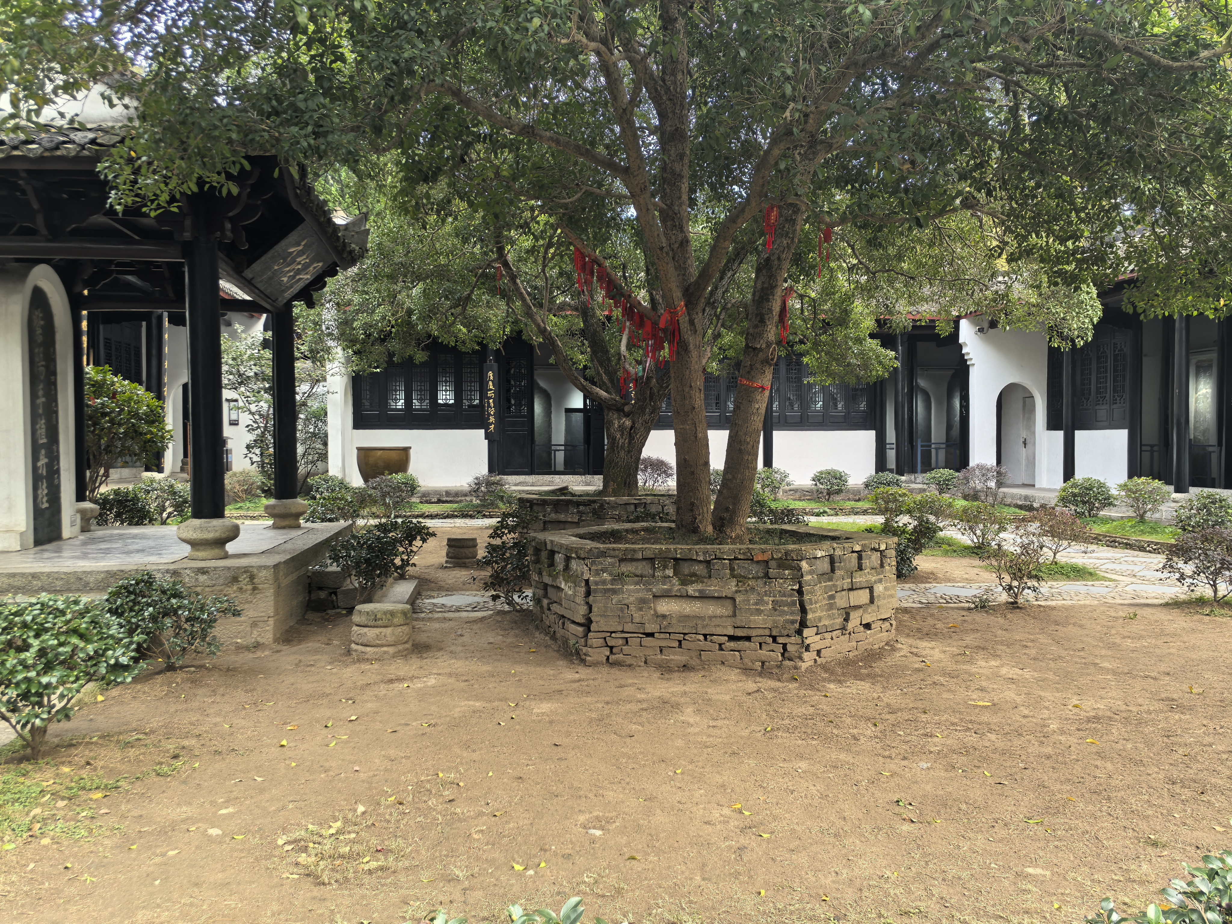 进大门左手第一个院落是先贤书院,纪念和祭祀对书院有开创之功的先贤大儒,其中就包括建立者李勃,以及对书院有开创之功的朱熹。其内部建筑包括朱子祠、报公祠、丹桂厅、碑廊。据说朱熹老爷子非常喜欢丹桂,现在院里还有他手植的丹桂。