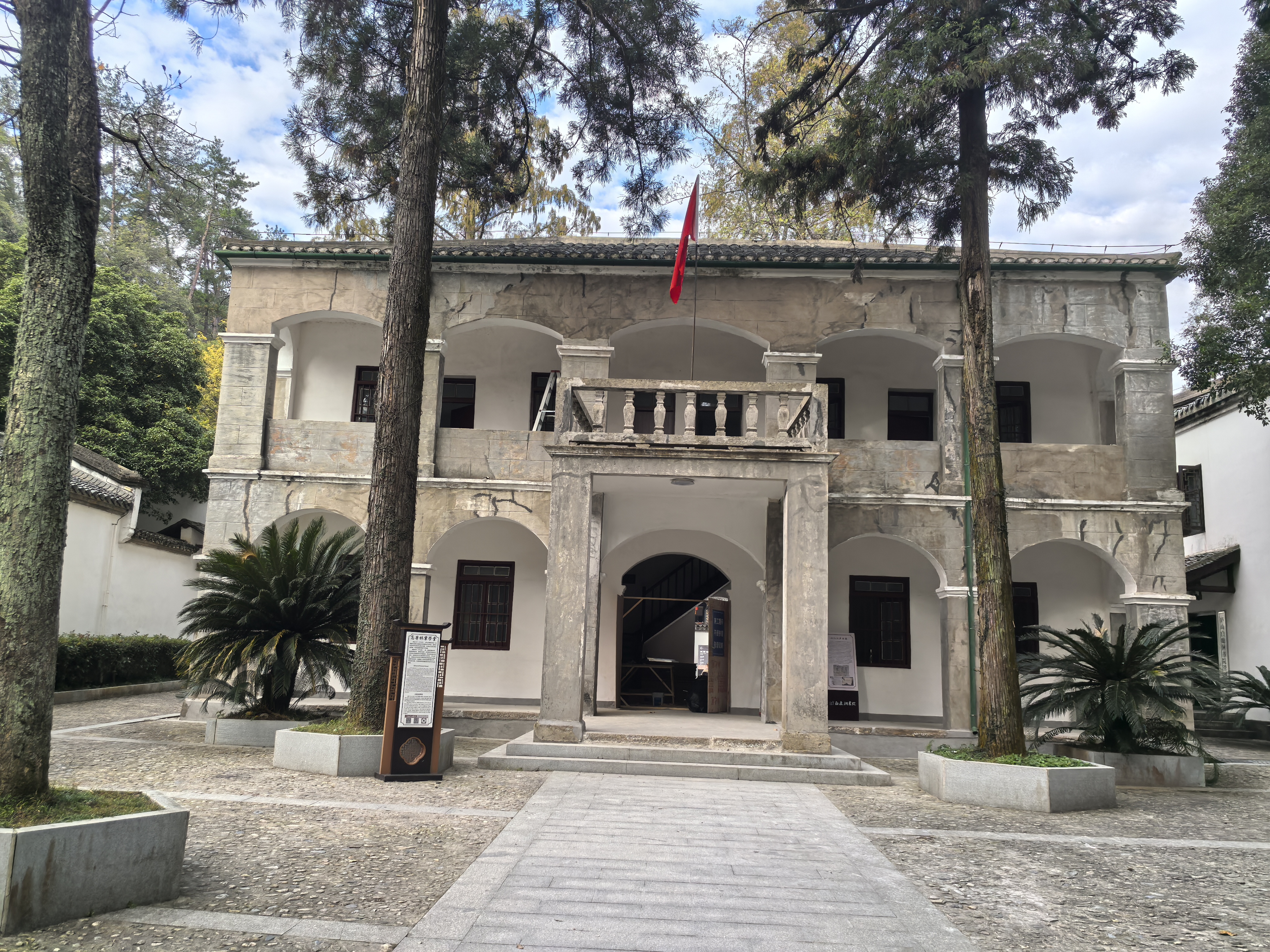 第五个院落是延宾馆,是书院老师生活起居的地方,也用来接待外部宾客。内部建筑包括憩斋、逸园、春风楼,其中春风楼是洞主下榻处。在辛亥革命之后,在迎宾馆建了一个中西合璧的二层小楼,开办了江西高等林业学堂,西式小楼和书院整个明清建筑有点不合,但是它也代表了书院的历史。