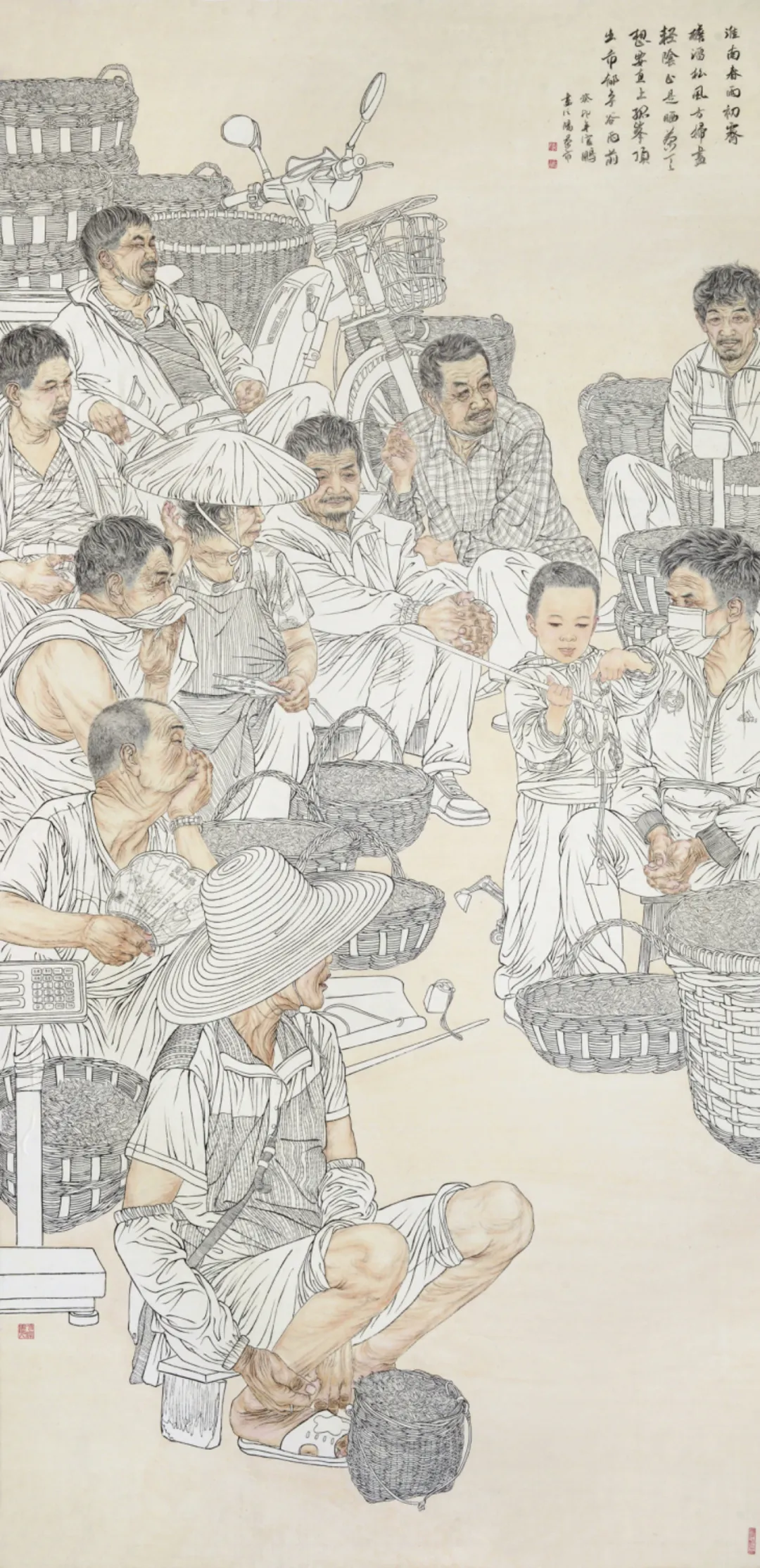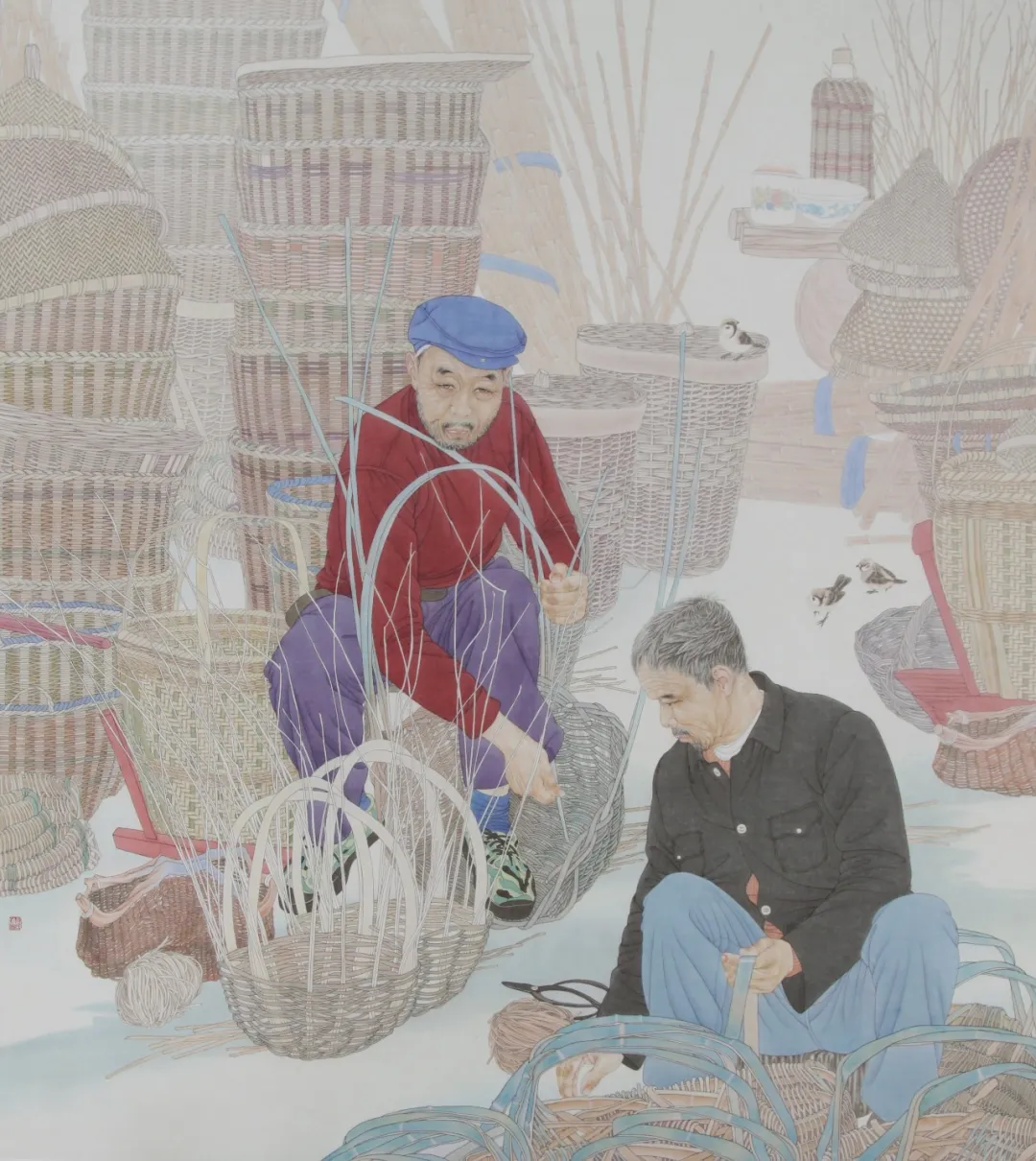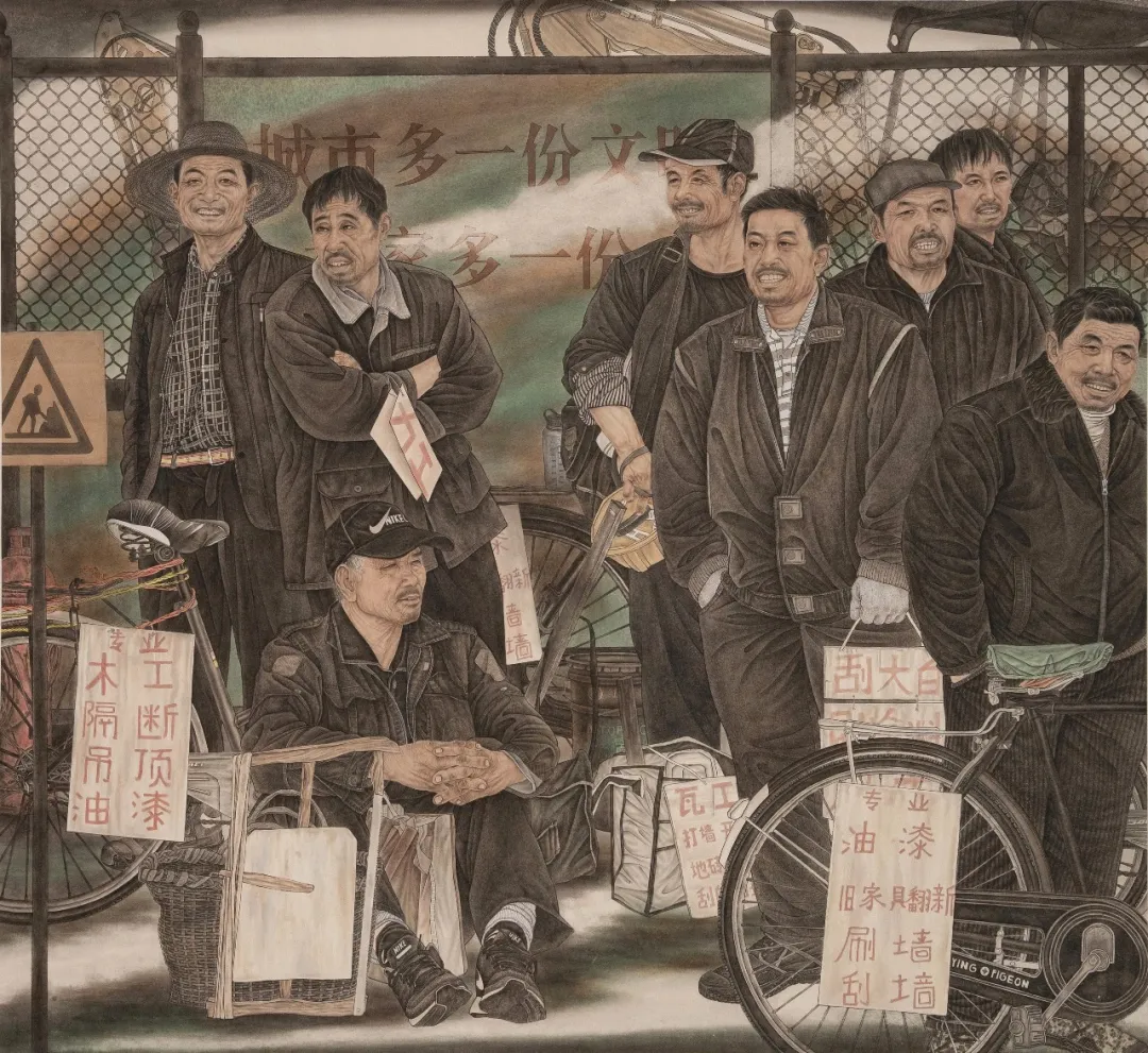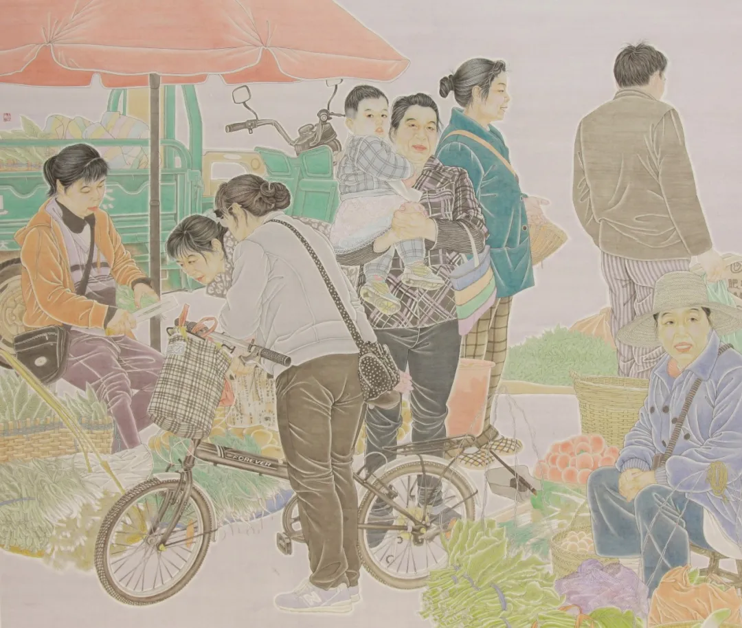 劳动人民的形象自带原生的生命力,他们的体态因长期劳作形成独特特征,神情里藏着生活的沉淀与坚韧,这种不加修饰的真实感,是艺术创作最宝贵的素材。他们的生活场景——田间地头、市井街巷、手工工坊,构成了最鲜活的人间烟火,承载着普通人的生活轨迹与生命力量。相较于刻意营造的审美形象,劳动人民的形象更贴近生活本质,更能引发广泛的情感共鸣。工笔人物画的创作,是技法与认知的统一。写实风格要求画家既具备扎实的造型能力,又要有对生活的敏锐洞察力。技法是表达的工具,而对生活的理解则决定了作品的深度。我始终认为,工笔不应局限于形式上的精致,更要传递对生活的客观认知——劳动的本质、平凡的价值、人性的质朴。在创作中,我刻意弱化主观情绪的渲染,以客观视角记录人物的状态与场景的氛围,让观者通过画面自身的细节与真实感,自行体悟其中的内涵。