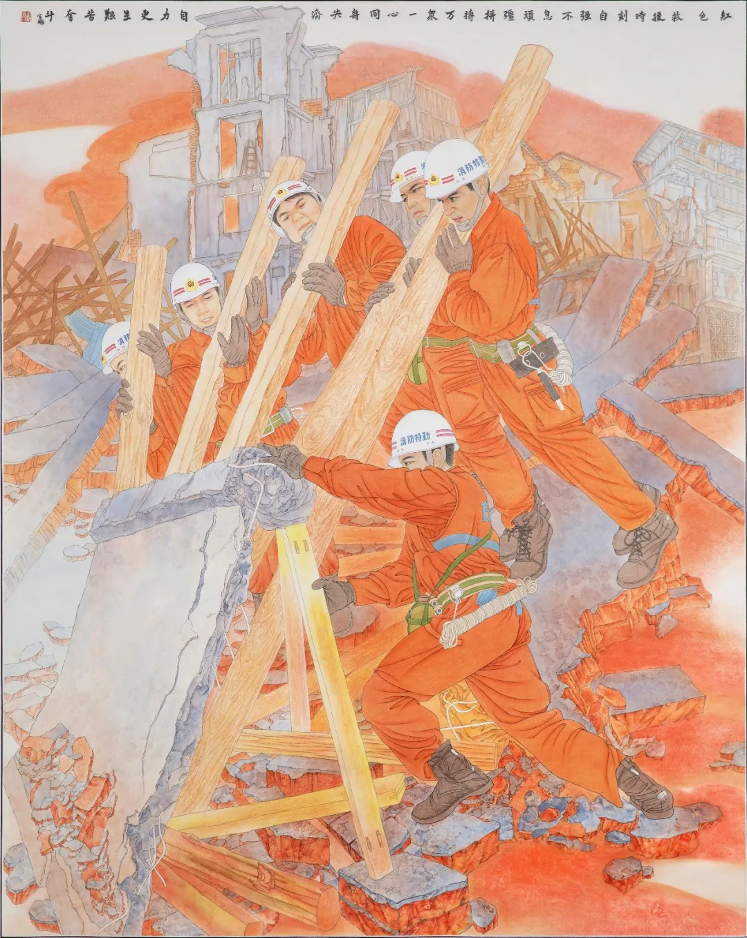 《红色·救援时刻》195cm×170cm 2021年