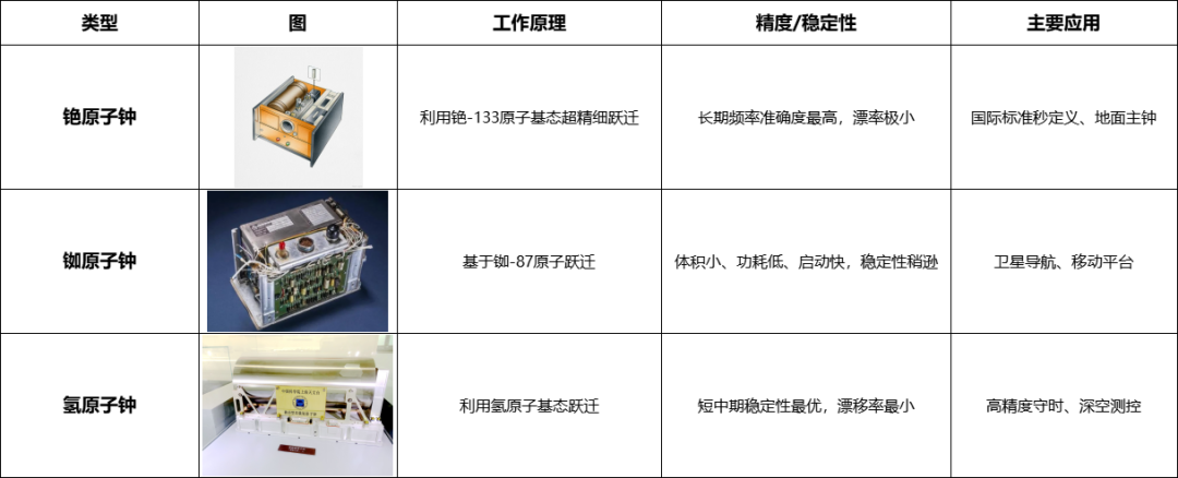 根据工作介质和应用场景,主流原子钟可分为三类: