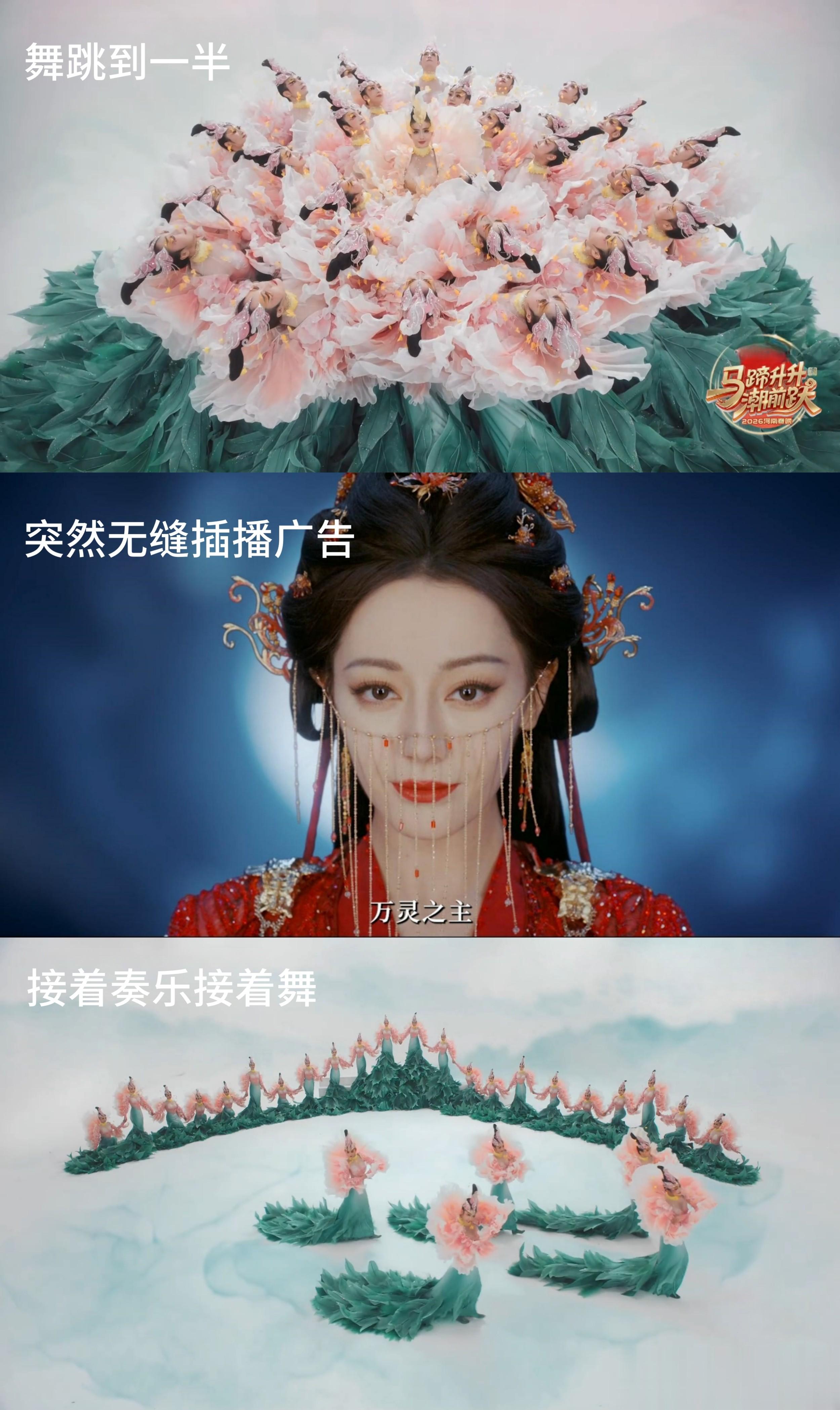 但好景不长,舞还没跳完,播放平台也出来搞事情,居然中途插播了一则迪丽热巴的新剧广告。