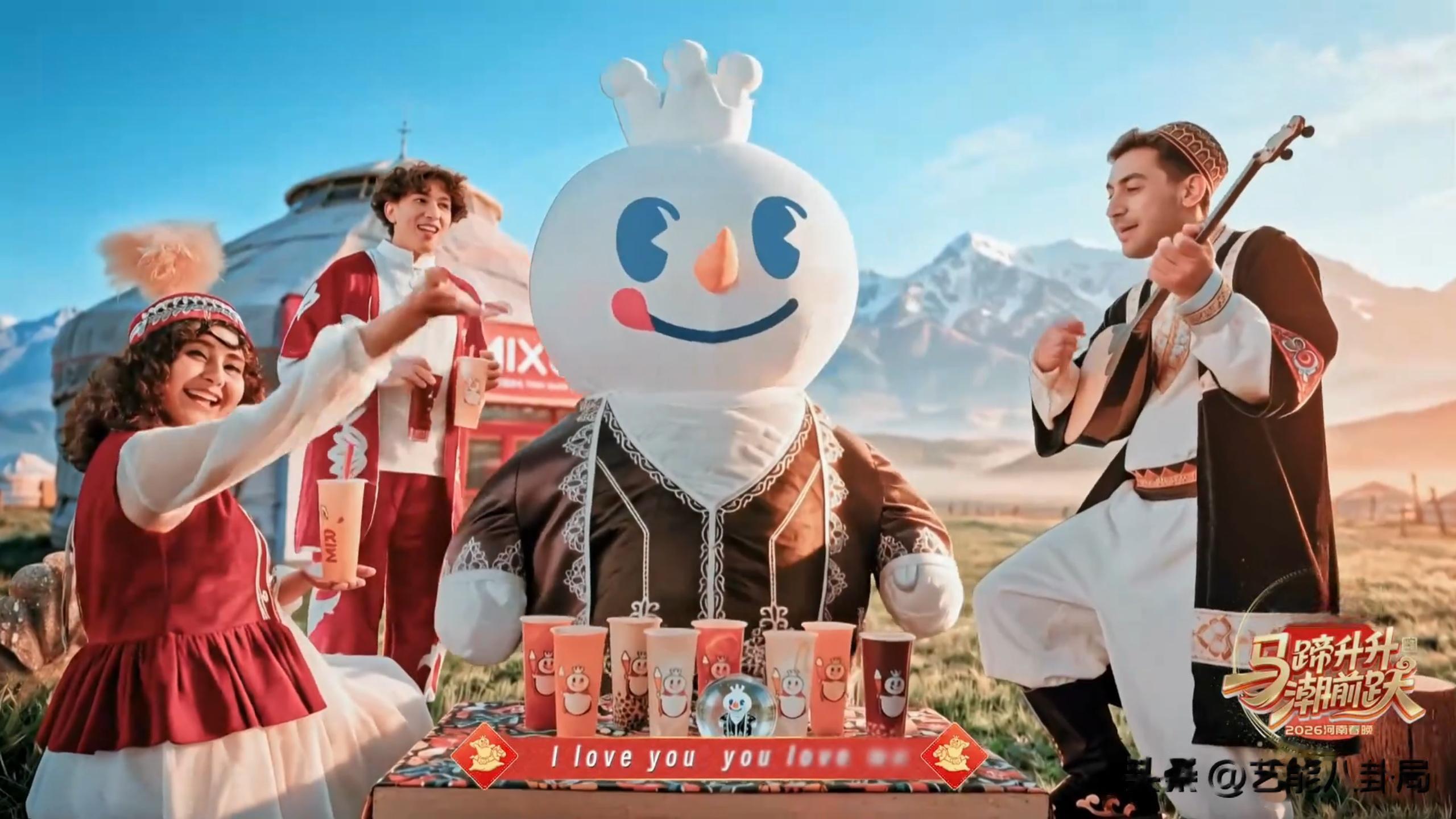 陈丽君的《木兰行》一唱完,导演组更是演都不演了,干脆把舞台交给了吉祥物“雪王”,播放了一整首洗脑的门店主题曲。
