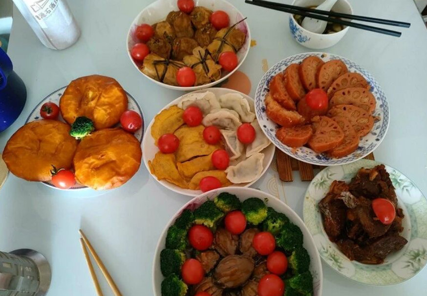 趁着叔叔阿姨和子女聊天的时间,张敬文去厨房帮忙端菜。等挂断电话,饭菜已上桌摆好,王叔叔找来家中的红酒,对小张说:“你来陪叔叔阿姨过年,我们很高兴,咱们开一瓶红酒,庆贺新年吧。”因敬文当天值班,她以茶代酒敬二老,并说到:“叔叔阿姨,给您拜年了,祝您二老新年生龙活虎,虎虎生威,新年身体健康,万事如意!”,随后大家共同举杯庆祝新春。