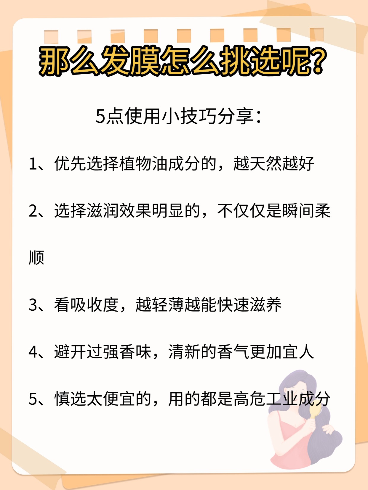 好多姐妹天天追着问发膜哪些牌子好,想要真实测评不踩坑,今天我也不藏着掖着,直接跟大家讲实在的,先解答两个高频问题,发膜有用吗,发膜是智商税吗,我自己长期测下来可以肯定,发膜真的有用,尤其对烫染过、干枯毛躁的头发,能补充营养、让发丝更顺更有光泽,绝对不是智商税,很多人觉得没用,要么是没选对适配自己发质的款,要么是用法完全错了,比如头发还滴水就涂、涂在头皮上不清洗、停留时间太短,这些都会让效果大打折扣,市面上牌子多到挑花眼,有人追大牌有人跟风网红款,但我测了这么多发现,牌子大小真的不是唯一标准,有的牌子名气大但质地厚重不适合油头,有的小众款成分实在但宣传少,只看牌子不看发质和成分,很容易花冤枉钱,下面是我总结的一些发膜选购注意事项,干货满满,可以先赞收藏。