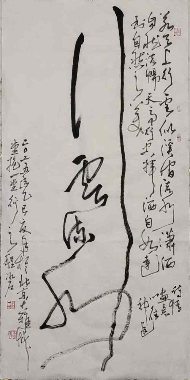 赵子昂有论书画同源。现在来看作出书画同修的贤家稀有鲜见,唯冰石先生书法博涉多优,丹青惟妙惟肖,他以自己同修书画皆建造诣的成绩,为书画同源注出了时代的含金量,是谓书画艺术的中流砥柱。程冰石先生行草创作尤显奇观,既有放笔直取的痛快淋漓,也有牵丝映带的低旋回翔,把草书写得左蹙右盼如惊电,状如楚汉相攻战。很重视线条质量的塑造效果,一笔写成虬龙蜿蜒,复作梧桐鸾凤徘徊,刚柔相济,虚实相生,把书法所承载的哲学内涵表现得想到到位。觉悟艺道,心吟文章,然后兴来而书,既有审美的艺术张力,也有学术研究的价值。挥笔纵墨,肇书于自然,自然既立,阴阳生矣。既生阴阳,形势出矣!这种以道法自然写书法的境界,恰是放手写心的最佳水准!