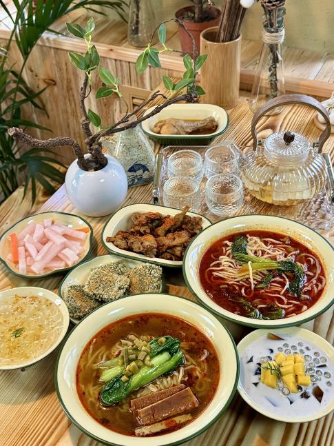酸辣鸡杂面还有肥肠面处理得巨干净,卤得入味又不腻,辣度友好到不能吃辣的朋友也能冲!碗杂面糯叽叽的杂酱裹满每根面条,黏糊糊的口感适配威海的冬天。