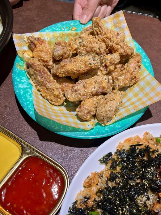 毛蚶拌饭是甜辣的,肉很肥,裹上脆脆的海苔特别好吃,强推烤牛肉,在锅里呲啦呲啦地巨无敌香,牛肉也多多多。