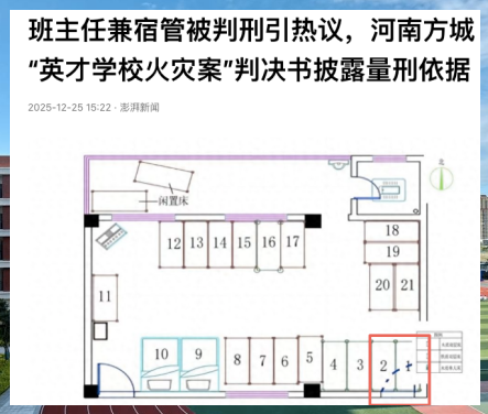 秤盘左边,投资人李某建了座无水的消防池,硬塞进三倍于标准的学生,只判7年;右边校长徐某阳任内三年不组织逃生演练,负有管理责任,刑期6年半。而宿管贾某的6年,反倒显得格外刺眼。