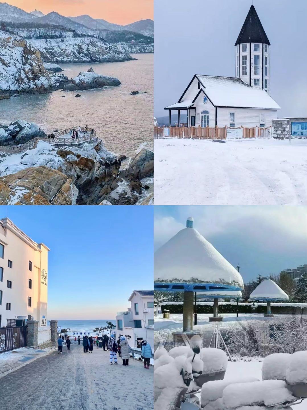 ❄️我们是第一天中午到的威海站,下车直接先去韩乐坊吃了顿韩式烤肉,接着就直奔威海大相框🖼️了,这里随便拍都能出片,接着去了小石岛,这里适合晚上过来逛,我们刚好看到了日落🌄