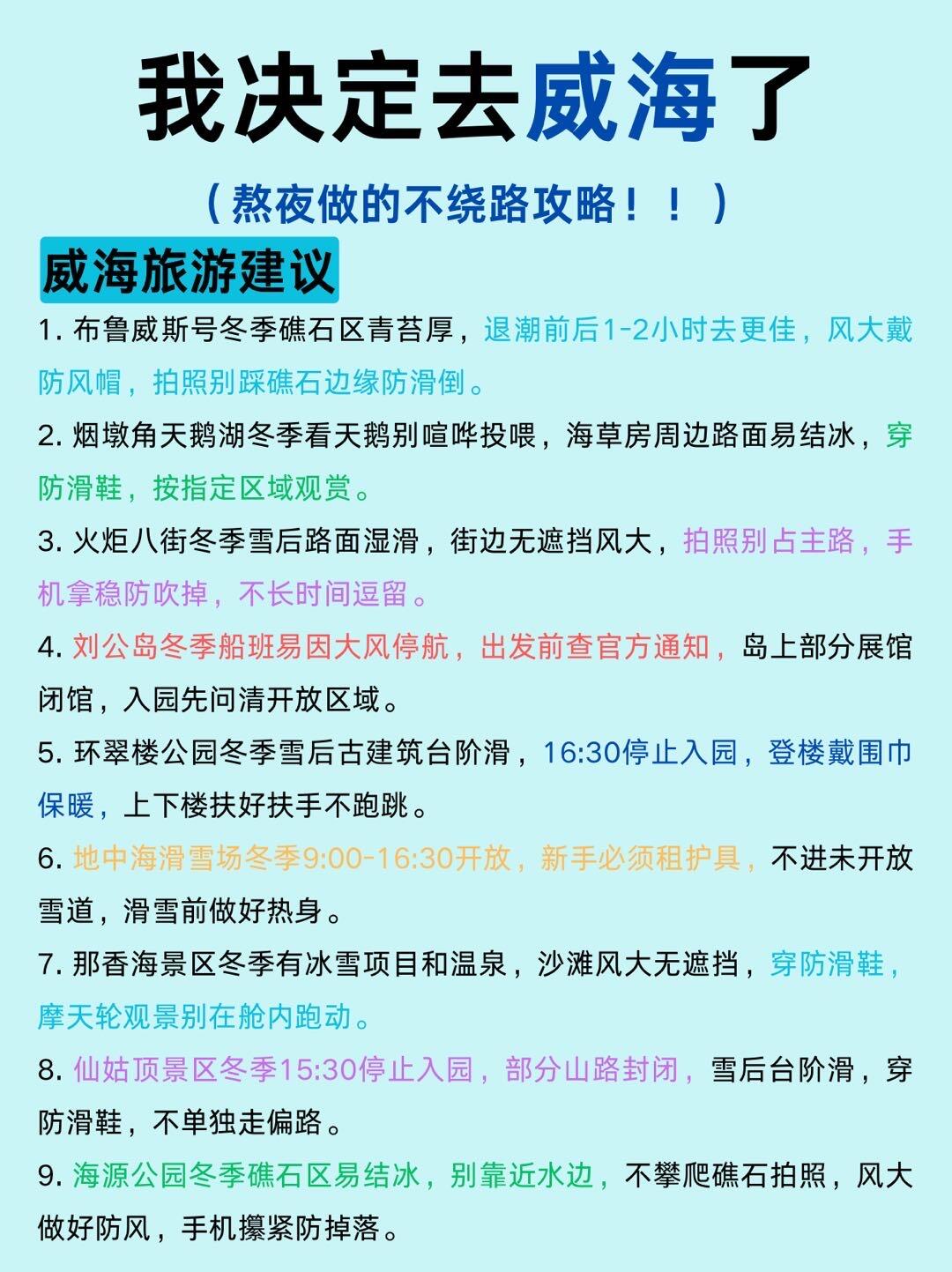 来威海旅游不知道怎么玩,给大家整理了威海12月份旅游攻略,带你玩转威海,全程不绕路,有需要的家人们快收藏起来👇