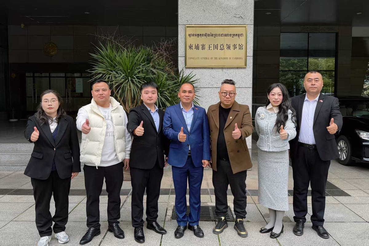 共工社1月14日电(董勇)2026年1月5日,在中柬建交68周年之际,亚洲商业研究院(香港)统筹联合香港共工新闻社、云创兽(深圳)科技有限公司、嘉兴嘉创知识产权代理有限公司、浙江舟山糖生果农业科技有限公司组成中方代表团,拜会柬埔寨王国驻南宁总领事馆并举行交流座谈。双方围绕中柬双边合作及中国—东盟区域多领域务实合作深入交换意见,为赓续传统友谊、拓展合作空间、推动区域协同发展凝聚共识、擘画蓝图。
