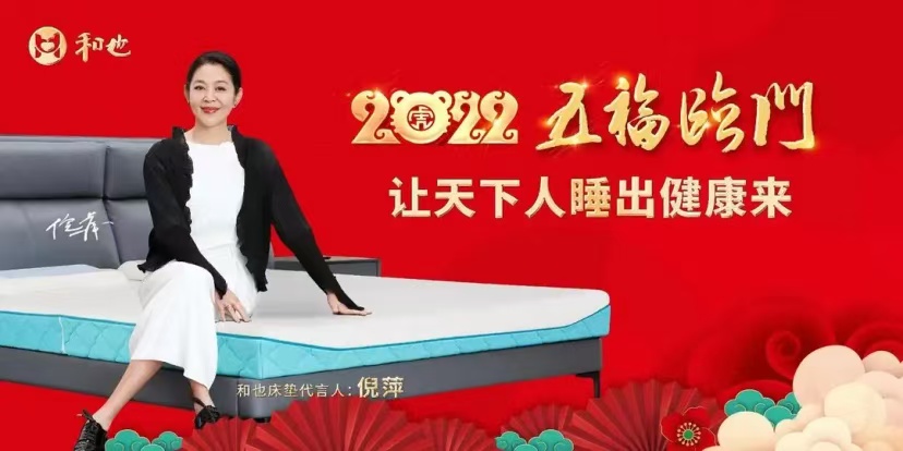 每年和也都会拿倪萍做海报,床垫的宗旨是让天下人睡出健康来。倪萍也一直很认可和推崇和也的床垫,每次出席活动都会大力为其宣传。