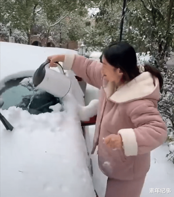 她想到妹妹刚买不久的私家车正好停在小区露天车位,前一晚下过冻雨,玻璃上结了一层薄冰,便决定用这辆车做实验。当天上午,李女士烧了一壶滚烫的开水,端着水壶走到妹妹车旁,还特意打开手机摄像头记录全过程。