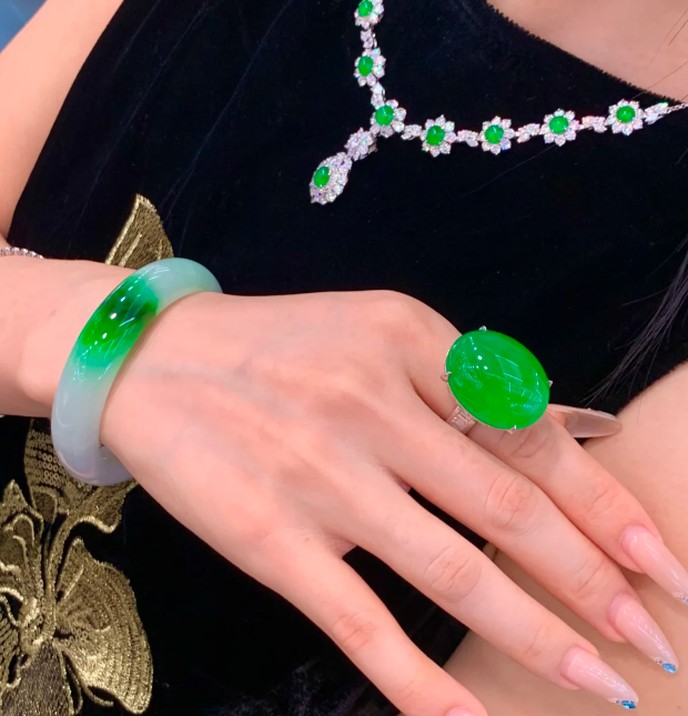预算有限,他们会推荐糯种小挂件,告诉你“糯种温润细腻,佩戴久了,会慢慢滋养出更柔和的光泽”;追求质感,他们会带你看糯冰种飘花手镯,讲解“飘花自然灵动,搭配温润底色,是东方美学的极致体现”;想送长辈,他们会推荐老坑糯种雕件,说“老坑料质地紧密,温润耐磨,寓意平安顺遂,最是贴心”。
