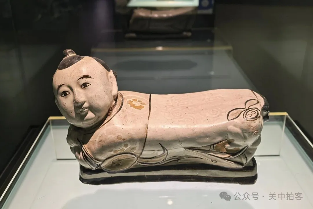 在瓷枕的表面,描绘题材丰富,反映了当时的民间风俗和社会生活,包括花鸟鱼虫、珍禽异兽、自然山水、人物故事、诗词歌赋等。其中,孩儿枕活泼可爱,受到普通百姓的青睐。